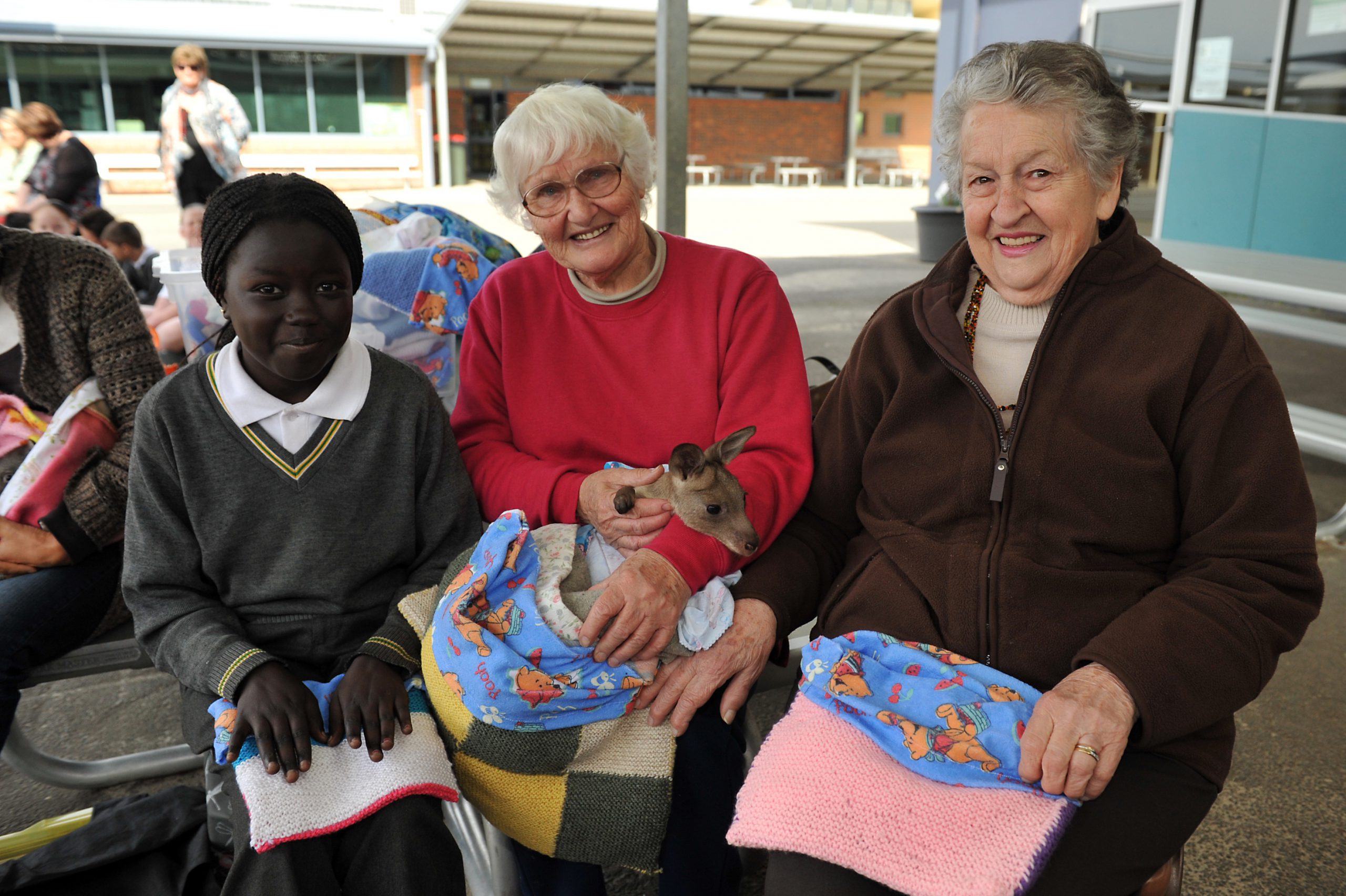 Seventy-six year-old Jean Quick, who has owned and operated ‘Jean-e-us’ wildlife shelter for the past 15 years and relies on her pension to cover costs, brought baby wombats and kangaroos to the school, proving a hit with students.