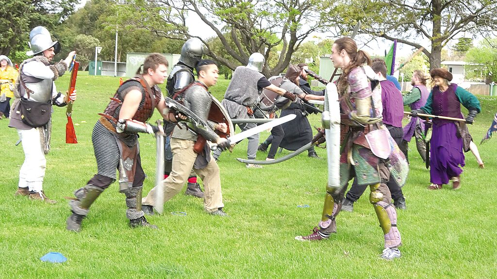 EVERY now and then a beat-up car on a Saturday afternoon will drive past Breed Street, Traralgon and observe the scenes at Agnes Brereton Reserve. The car will watch up to 100 armoured knights, witches, sorceresses and barbarians fight on a sports oval with toy arrows, foam swords and lots of makeup. The car will stop, honk its horn, shout “nerds!” then drive off. Veteran player Michael Campbell looks on. He is used to this. “People go by and they’re like ‘Oh you losers. Look at the nerds playing dress ups and fighting each other’, it’s just like we are only having fun,” he said. Every now and then, a group of teenagers walk by. Campbell believes he knows what they are thinking too. “They’re thinkin’ ‘God, he’s a weirdo. Look at these middle-aged people wearing costumes and hitting each other with foam bats. Go do somethin’ with your lives.’ That’s the general vibe I think we give out.” But to players like Anfernee Mason, these events are battles of epic proportions. “Once you’re playing, you forget that it’s not real, especially when there’s 20 people in metal armour running at you with great big weapons. If someone comes at you with an axe they’re coming at you with an axe,” he said. “It’s a huge cross between sport, theatre and fun.” Mason is the president of the Gippsland Chapter of Swordcraft, an organisation that does Live Action Role Play (LARP). These are events where people fight with fake weapons and win battles inspired by the video game Warhammer. Mason plays as part of a 25-person viking group that worships animal spirits. He wears construction boots, chain armour, a medieval helmet and a blue gown he bought from Russia. He fights with a wooden shield that has a spiral pattern in his left hand, and a foam sword in his right. “Our group is called ‘The Pelt’ and there’s five main animals that are the most sacred: they are the bear, the boar, the raven, the ram and the wolf,” he explained. LARP battles lasts about three hours. Mason says participants often engage in light-hearted teasing. “Our players split up into war bands and some have issues with other warbands like our dwarf players often insult the owls because they don’t get along, so there’s lots of playful sledging,” he said. “The weapons are foam, but they’ve got a fiberglass core, so they can still hurt if you give someone a decent whack.” Occasionally, playful competition results in injuries and so Swordcraft appoints a volunteer medical officer with first aid training like Peter Fawcett. “The worst it ever gets is a few decent bruises, nothing too bad. We have a lot of safety precautions. No head hits, no groin, no extremities,” he said. “Our biggest worry is actually heat stroke because we’re all mad and run around in 35-plus degree heat in heavy armour.” To avoid injuries, Swordcraft does a ‘mandatory new player’ training session. Campbell said training was an important requirement that begins well before a game starts. “If you do this untrained, you will hurt someone or yourself. A lot of it is just teaching how to swing safely. Like, not swinging as hard as you can and not aiming for people’s necks,” he said. “Even though the weapons are made of foam, if I swing hard enough, it’s going to leave a mark and I’ve gone home with bruises before.” Leader of the Sisters of the Sage warband, James Freeman, is proud that Swordcraft considers all aspects of safety, but says heat stroke is a concern due to the amount of activity. “It’s a sport in its own right. There’s a lot of energy spent. You’re not going to be running across the entire field for 10 minutes nonstop like other sports, but you’re gonna be always starting and stopping. Its quite intense,” he said. Freeman believes the event looks strange to passers-by. “I think there’s a bit of a social taboo on something like this and for most people it will never be their hobby, with something this far out of the mainstream, there’s no real pressure to join,” he said. “This change of the real world for them, something they didn’t expect to see is confusing.” But Swordcraft – and LARP-related activities have grown extensively over the years. Since Swordcraft began in 2011, it has been extended to seven locations across Victoria with new chapters being created right before COVID. It has a small, but very dedicated player base. Most players agree that when they first saw the matches, they all thought it was something they would never be a part of. Freeman said he was very reluctant when he heard about Swordcraft 13 years ago. “A mate of mine played it once and thought it would be my cup of tea and wanted to drag me down. But it sounded too nerdy so I said no,” he said. “After two months of pestering me, I went to a game and since then I’ve played weekly.” One of the most impressive players is James Klein, who has played for seven years without missing a single weekend (unless it was cancelled). He plays as a high elf called Katia, a wizard that can cast fire spells. After playing 100 games, every player receives a Braylong Centenary Dagger that was made by LARP equipment manufacturer Ateliers Nemesis Workshops as a reward. Entry costs $10 per player with the first game being free. The money goes towards buying new equipment and holding events. New players are given a uniform, but Klein said experienced players usually bring their own home-made clothes or pay potentially thousands in the store. “A lot of it is made by community members, like my nice red robe is made by one of our local players. But in the past I’ve made my own robes and dabbled with my own weapons,” he said. “It can get expensive, but knowing local makers makes it a lot cheaper, buying it online would probably cost me two or three times more.” LARP weapon equipment is also purchased, and Mason said the global demand for LARPing manufacturers is substantial. 