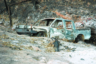 His Holden sedan broke down on the road near where the fire started, next to a pine plantation.