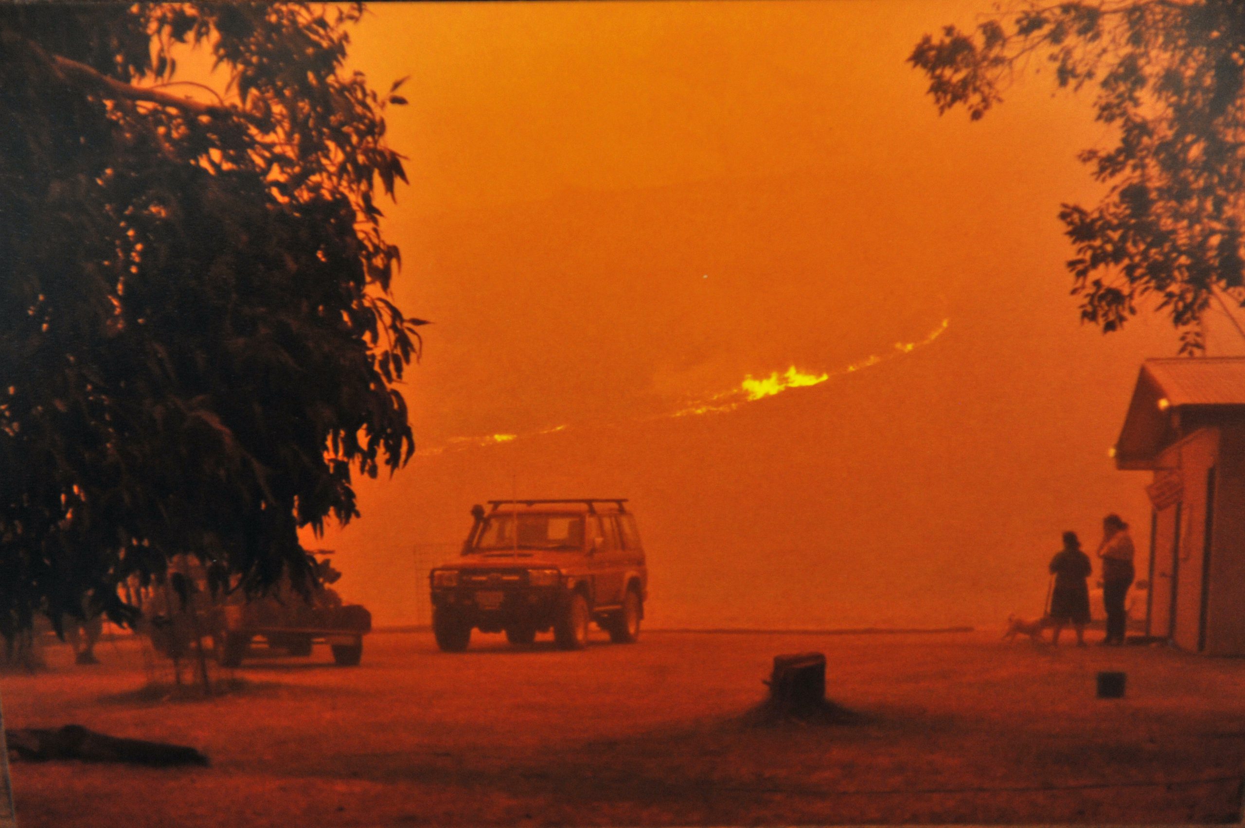 “I kept thinking, ‘he said we’re safe, he knows what he’s on about’, but on Friday morning we could feel the heat rolling down the hill and the roar of the fire.”