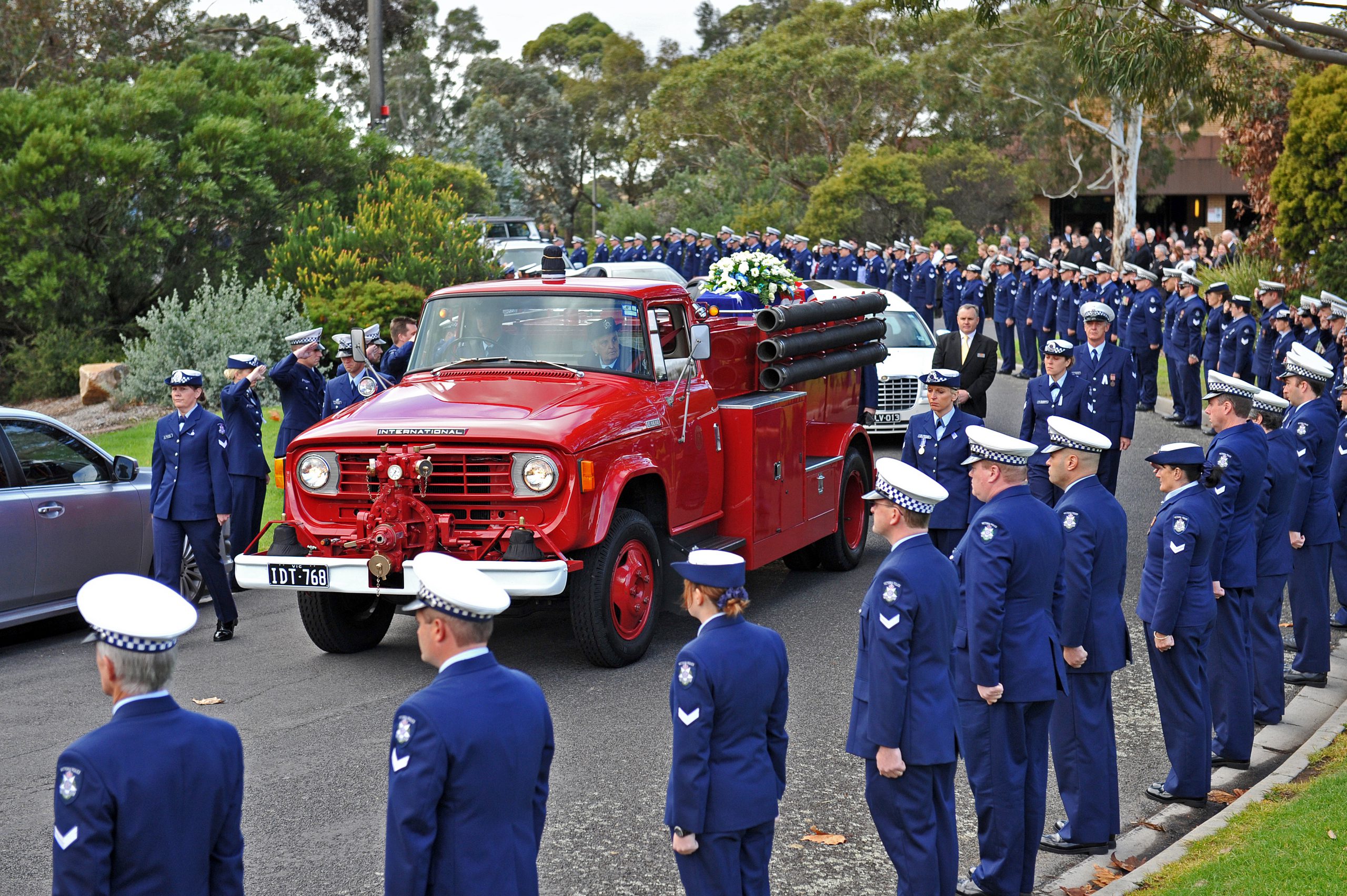 Hundreds gathered on Friday to honour their loved and respected Sgt Staple, who was farewelled at Kernot Hall, Morwell with a police and firefighter guard of honour.
