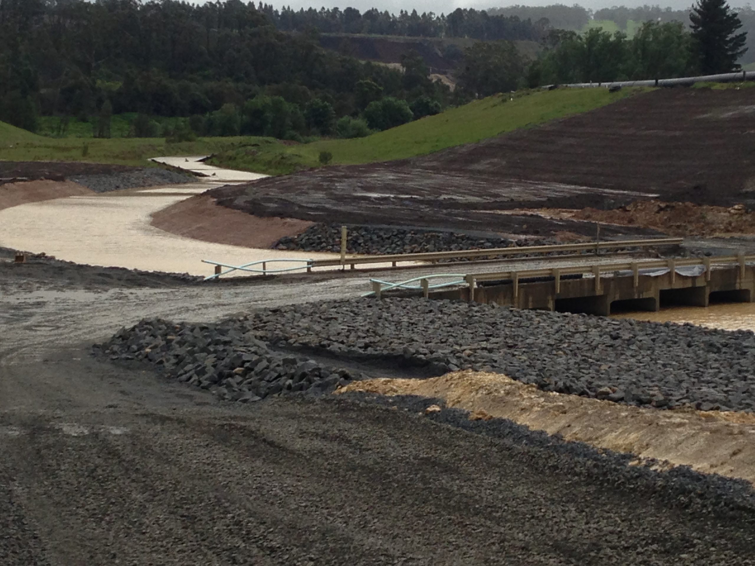 During the 14-month reconstruction effort, water flows were at first allowed to flow directly into Yallourn’s open cut coal mines either side of the diversion, from where it was pumped directly into the Latrobe River.