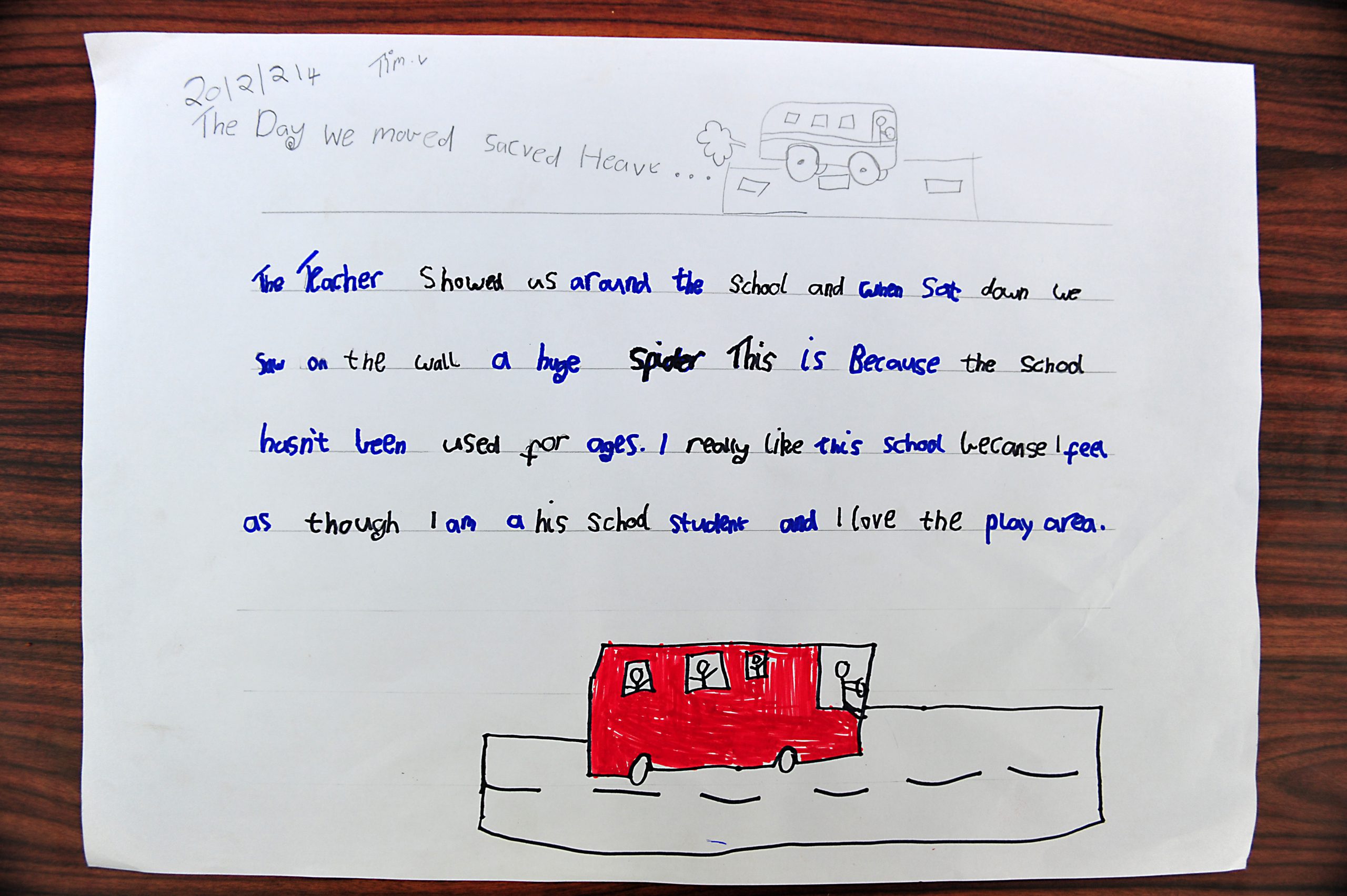 Classes from the Catholic school on Commercial Road were shifted to secondary school Lavalla late last week and grade four/five teacher Tricia Hicks asked students to write and draw about their experience.