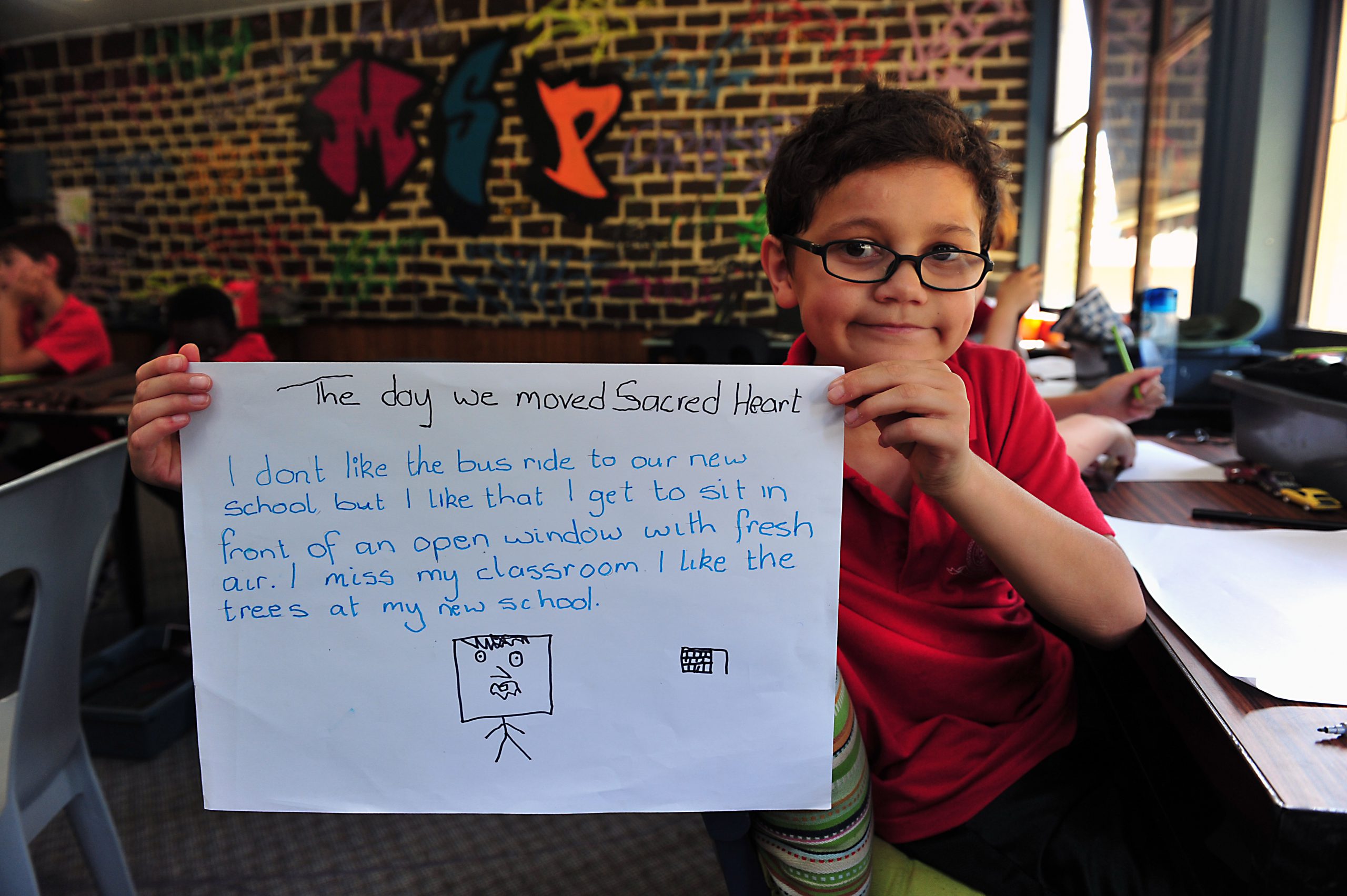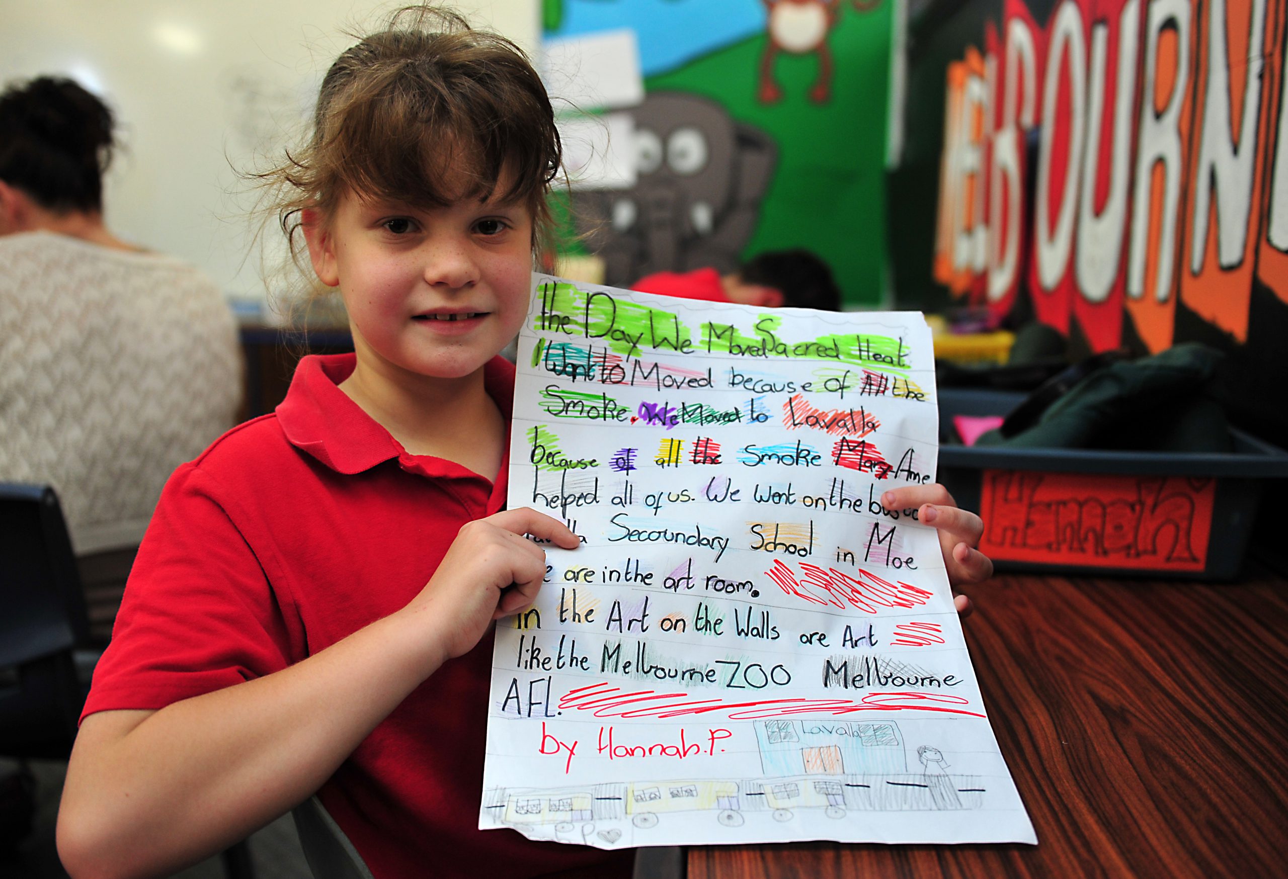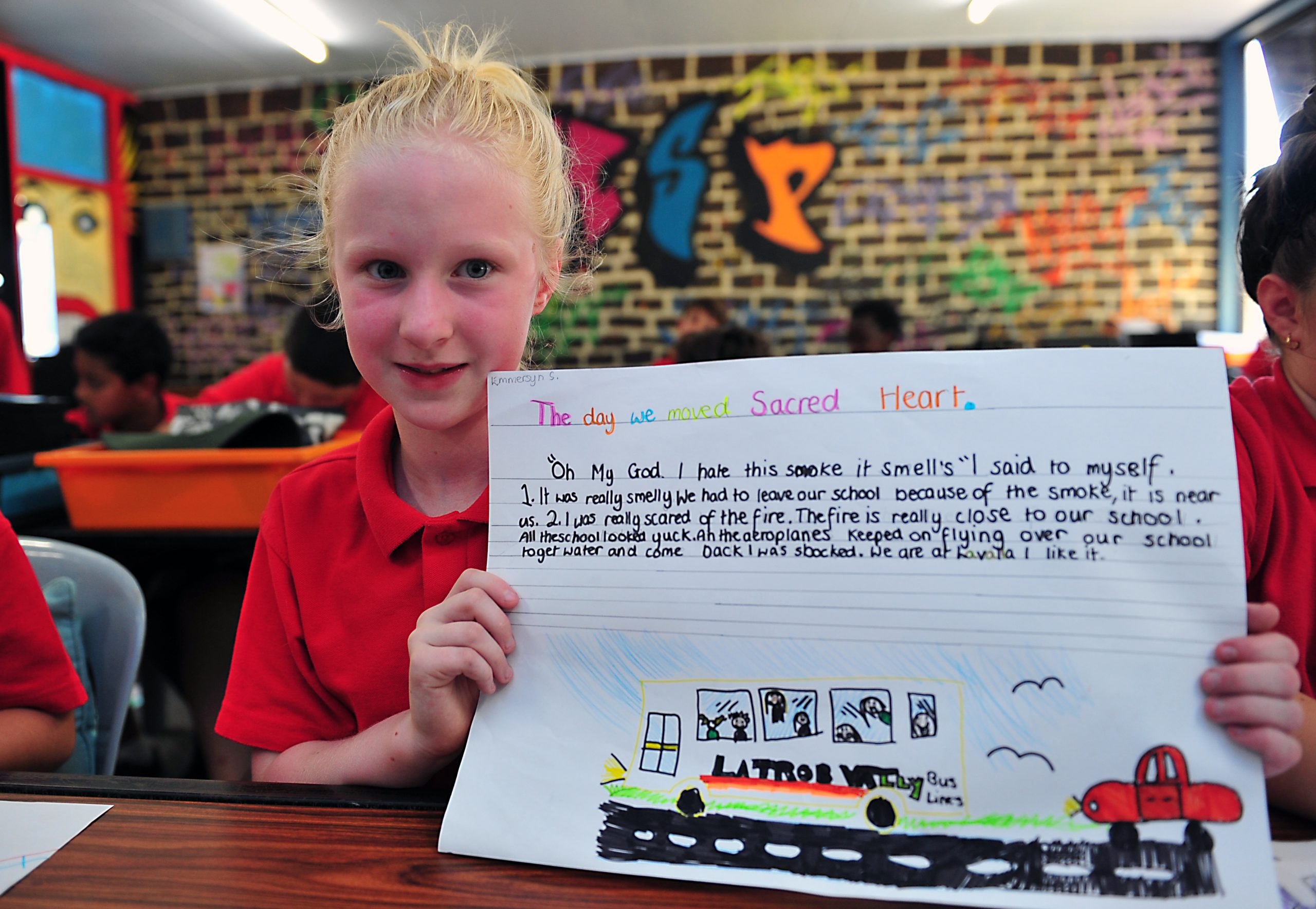 Sacred Heart Primary School students who relocated from Morwell to Newborough because of the smoke crisis have put texta to paper to express their feelings.