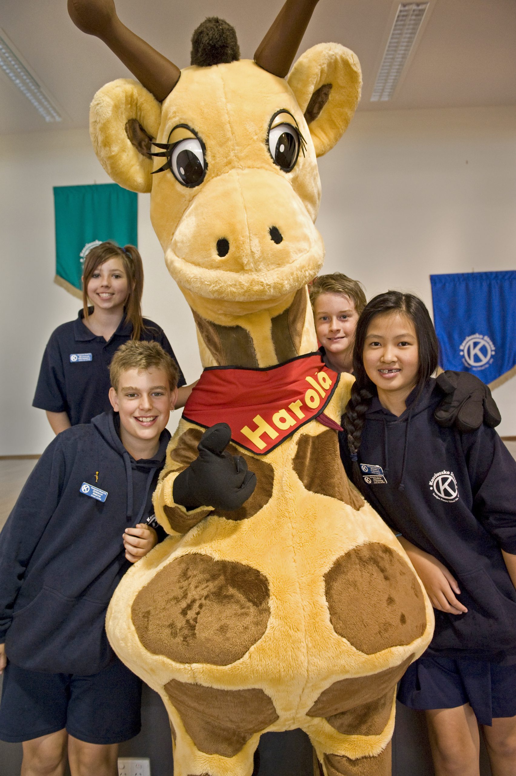 A TOWERING version of the loveable and unforgettable health education mascot Harold the giraffe has helped Kosciuszko Street Primary School students celebrate the launch of Gippsland’s new Life Education van.