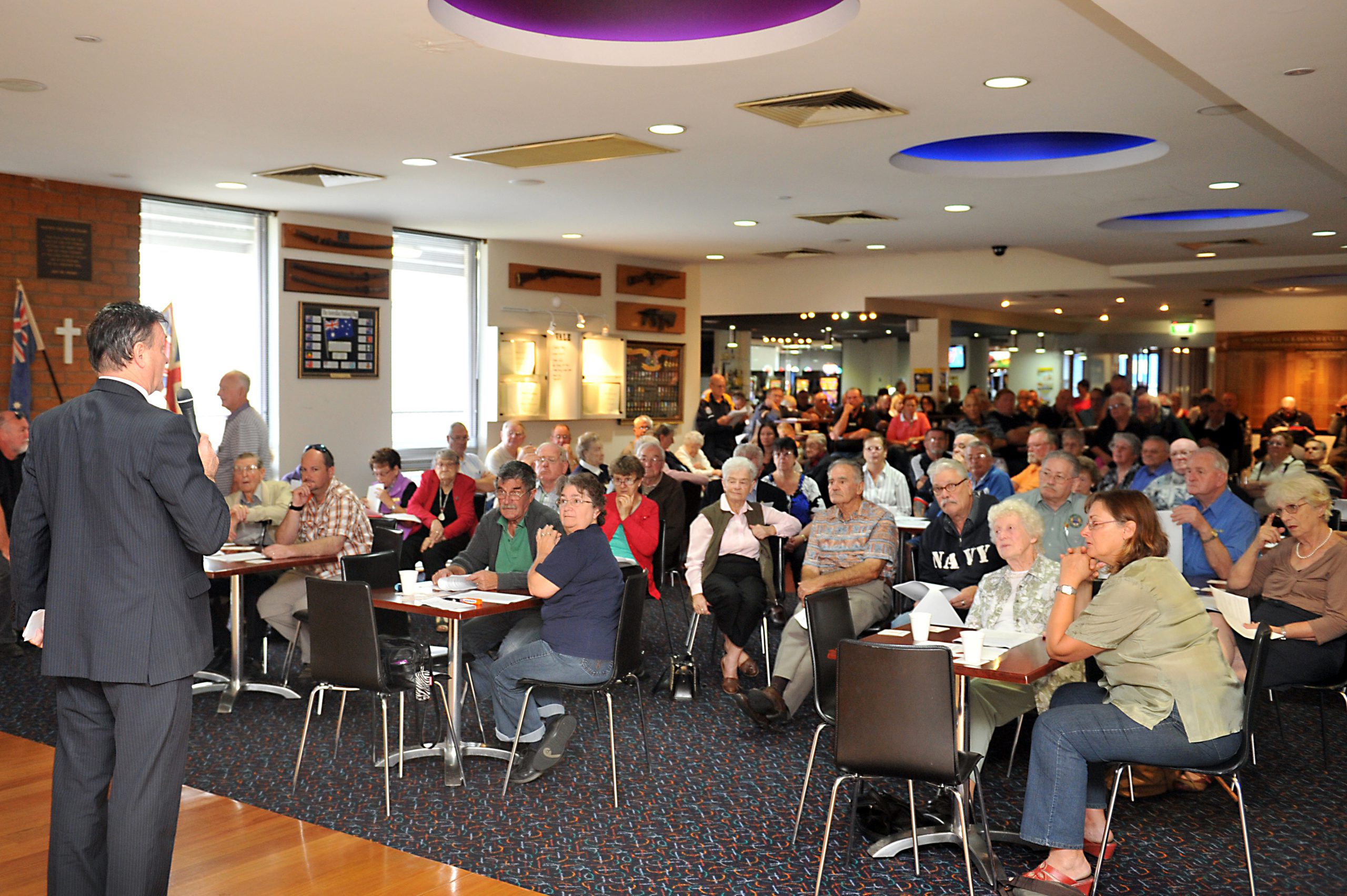 About 200 veterans from across Gippsland voiced their concerns to the DVA Victoria deputy commissioner John Geary and DVA Operational Support Victoria Veterans’ Access Network director David Cunningham at the Morwell RSL on Saturday.