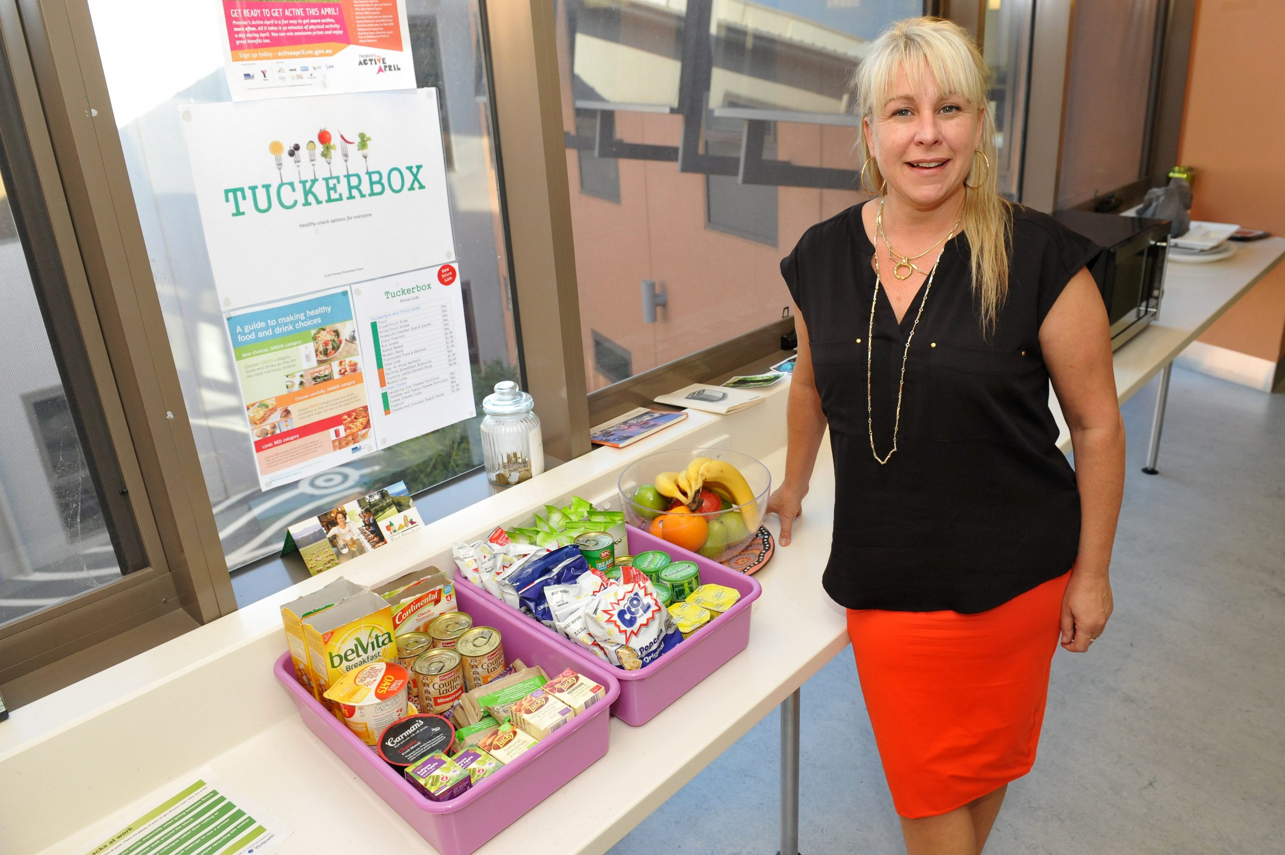 One of the most recent is the introduction of a ‘tucker box’ with fruit, muesli, baked beans, tuna, popcorn, dry biscuits and yoghurt as alternative snacks to the chocolate bars and potato chips typically found in workplace vending machines.