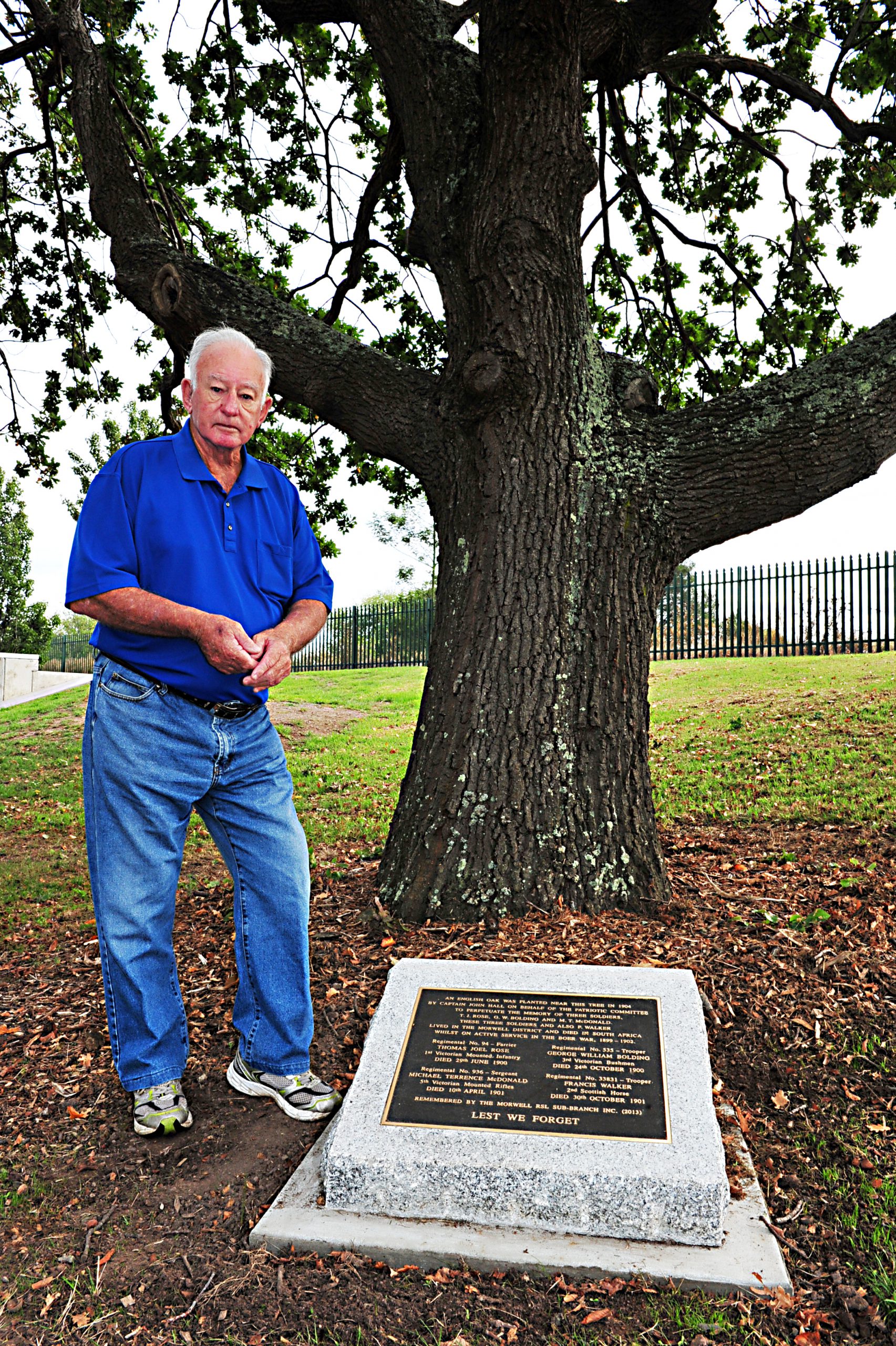 Morwell Anzac Day service-goers are encouraged to view the plaque placed underneath a tree, which is believed to be an offshoot of an English oak planted in 1904 for three soldiers who died in active service during the 1899 to 1902 Boer War.