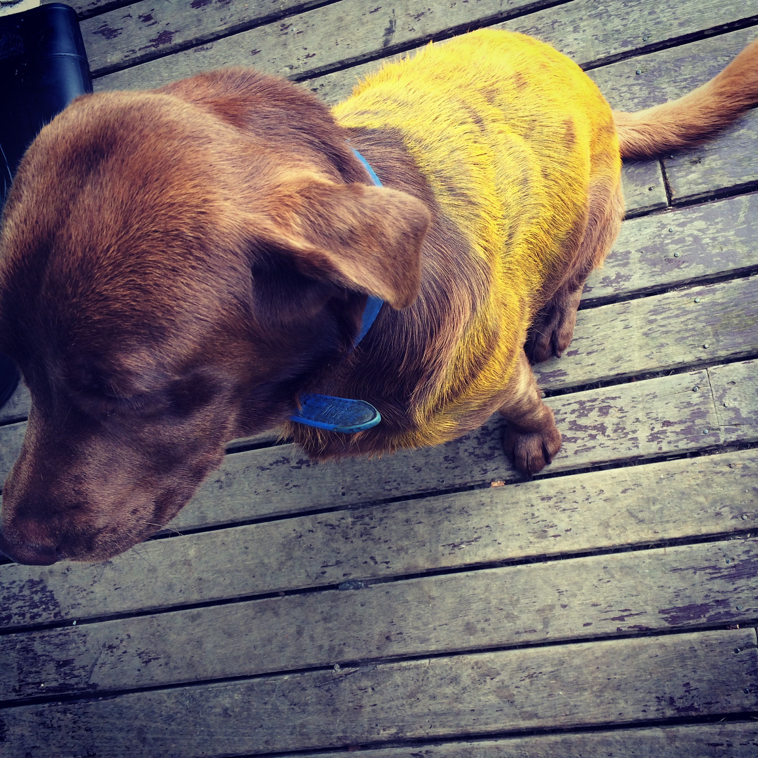 A HAZELWOOD North woman was shocked to find her pet Labrador spray painted yellow on Monday morning.