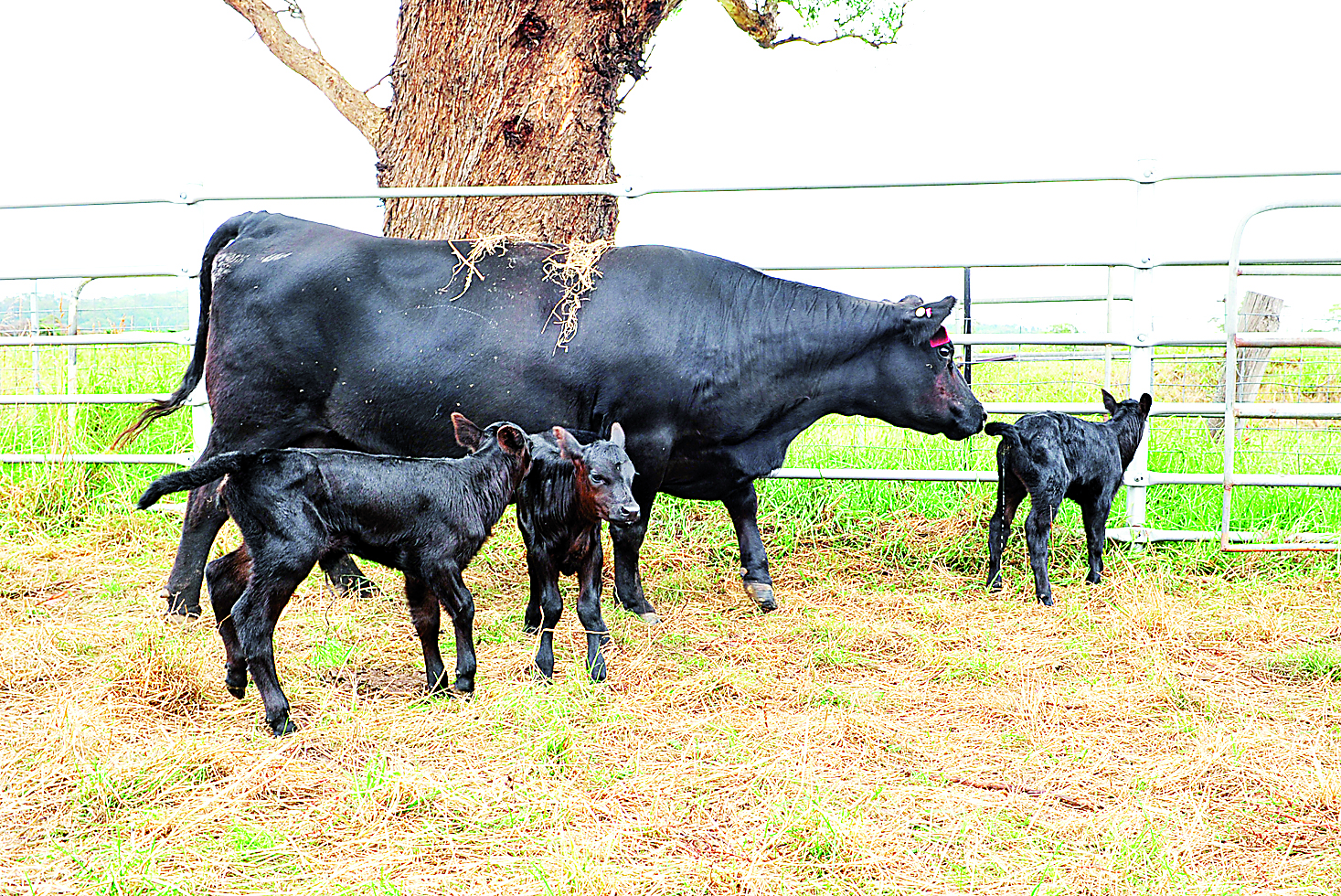 “We’ve put them in the yard all together because she was obviously confused with calves going everywhere, she’s mothering them all really well now which is good,” he said.