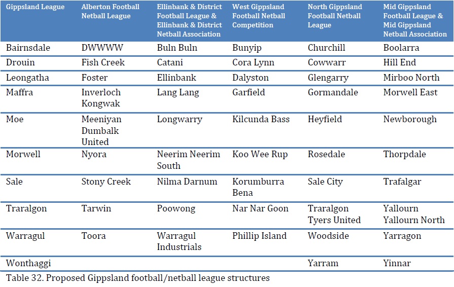 The Gippsland League, North Gippsland Football Netball League and Mid Gippsland’s football and netball competitions were not slated for change.