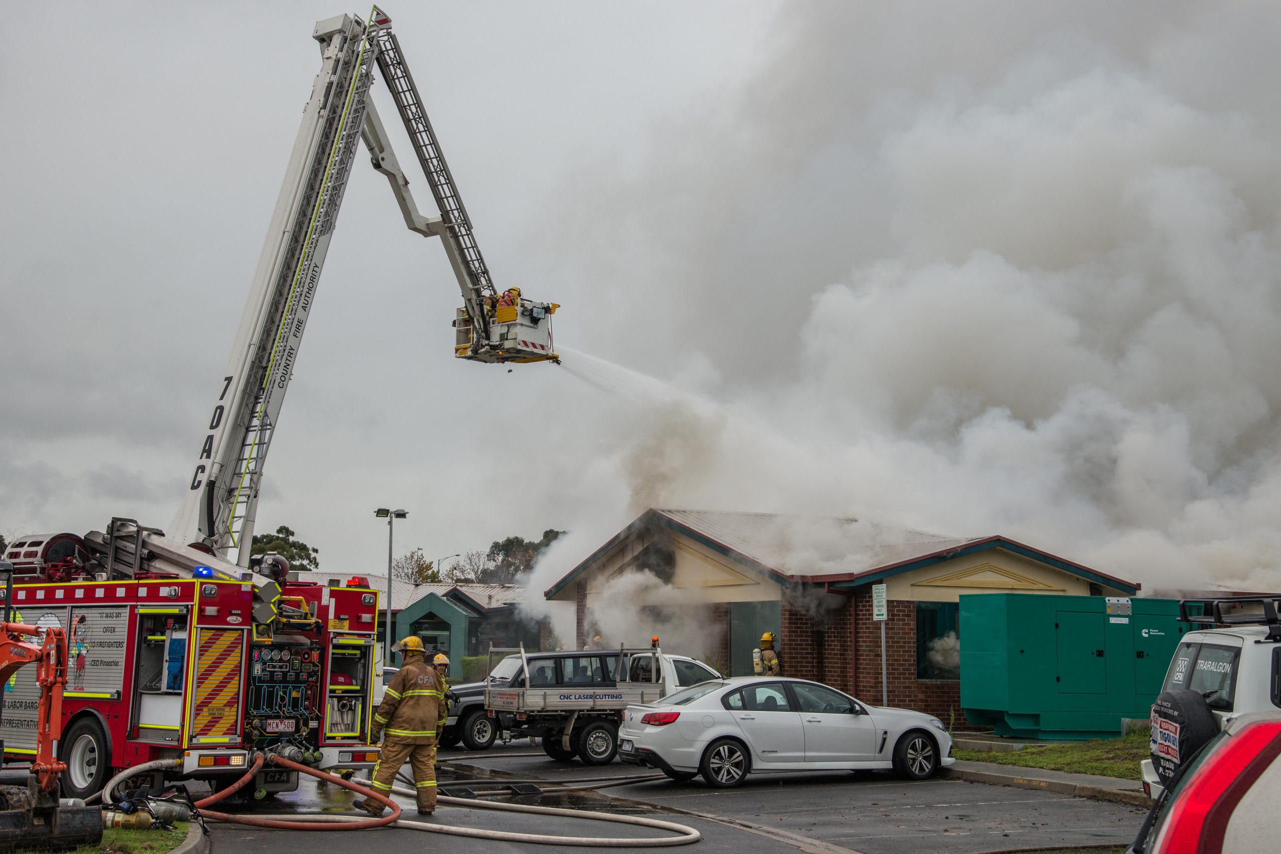 Ten CFA crews, including the large ladder platform truck responded to the fire.