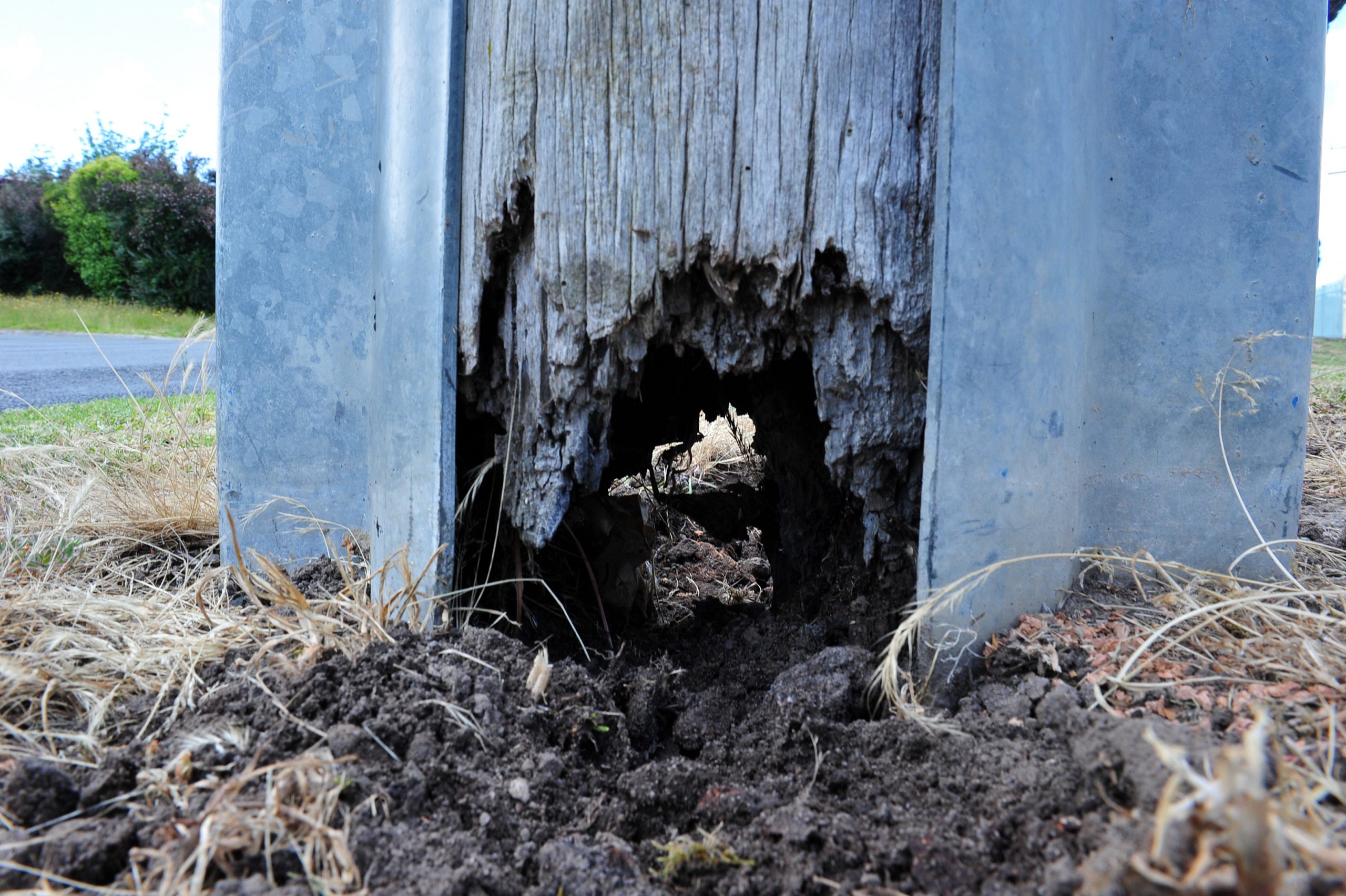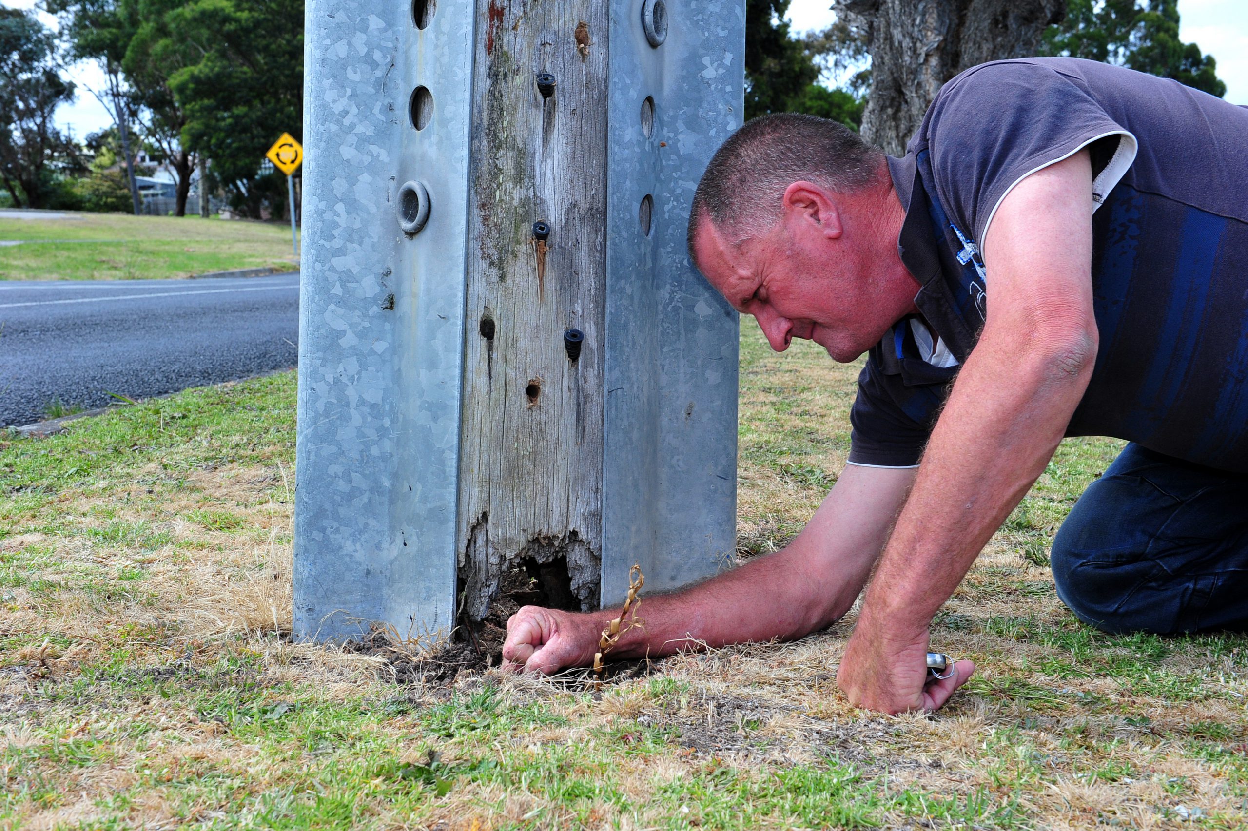 A concerned Neighbourhood Watch activist is urging residents to check their power poles, after uncovering a pole in Morwell with a large hole at its base.