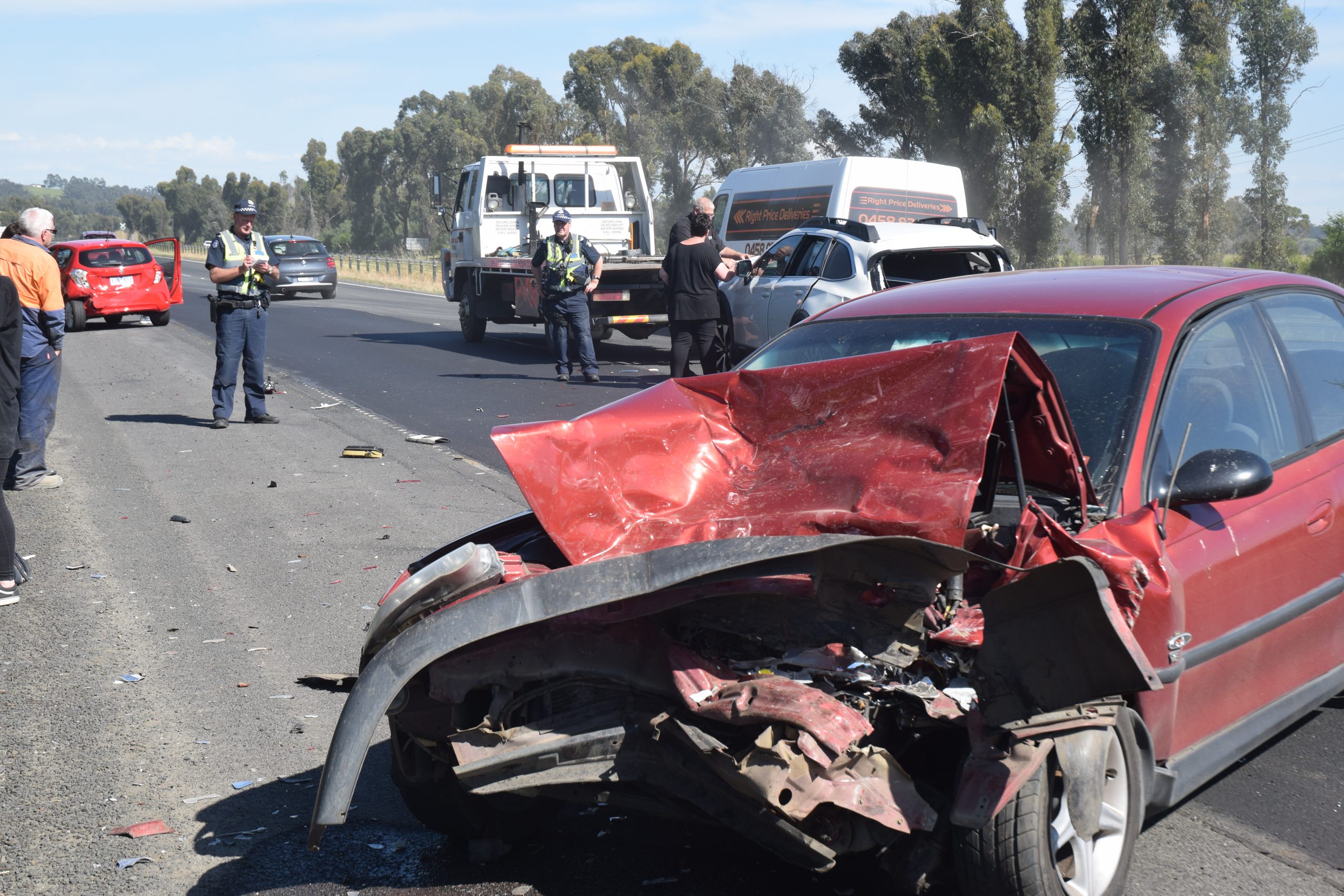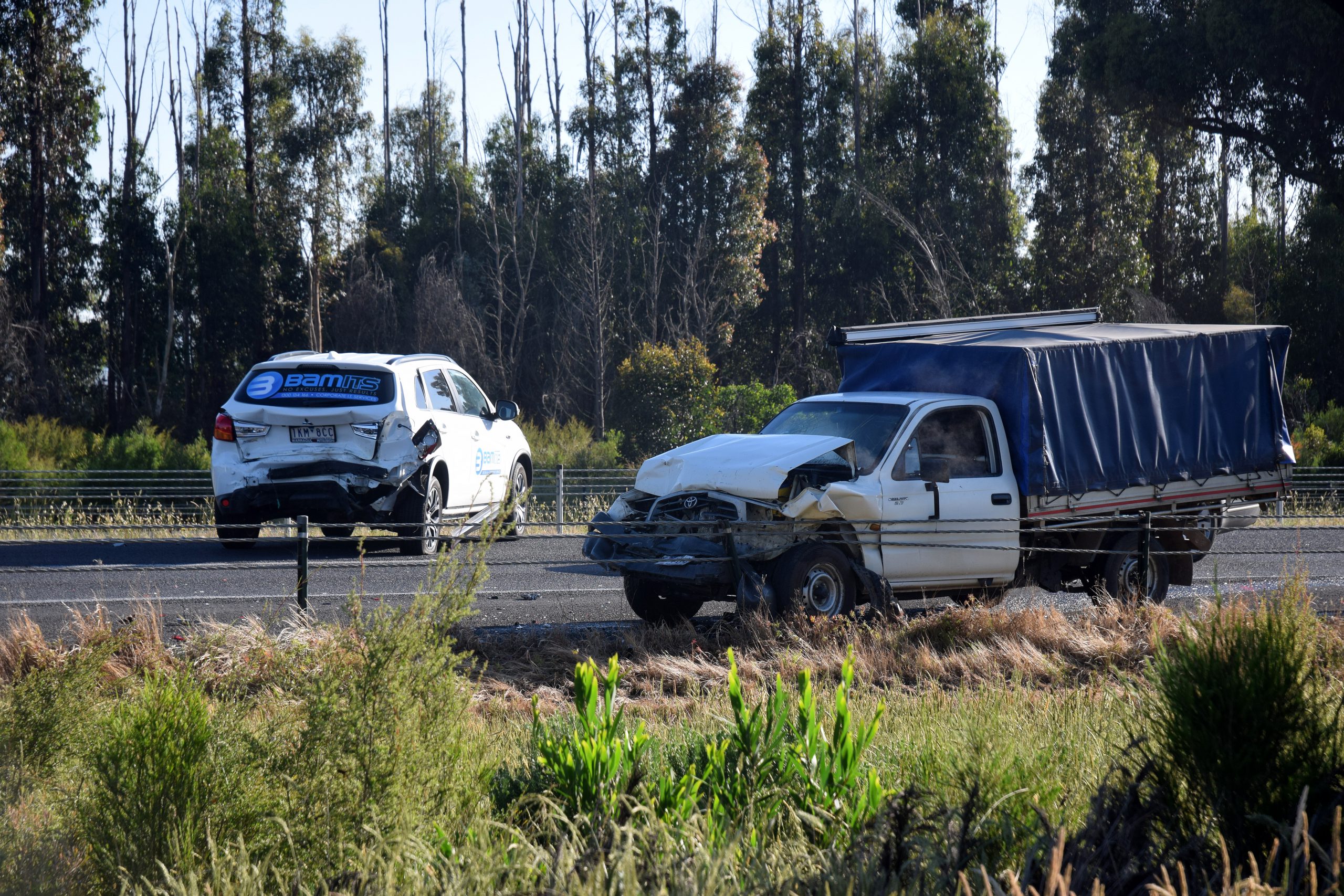 As the first incident was being cleared, another ute collided with a car travelling in the left-hand westbound lane of the freeway about 200 metres from the first crash at Hernes Oak.