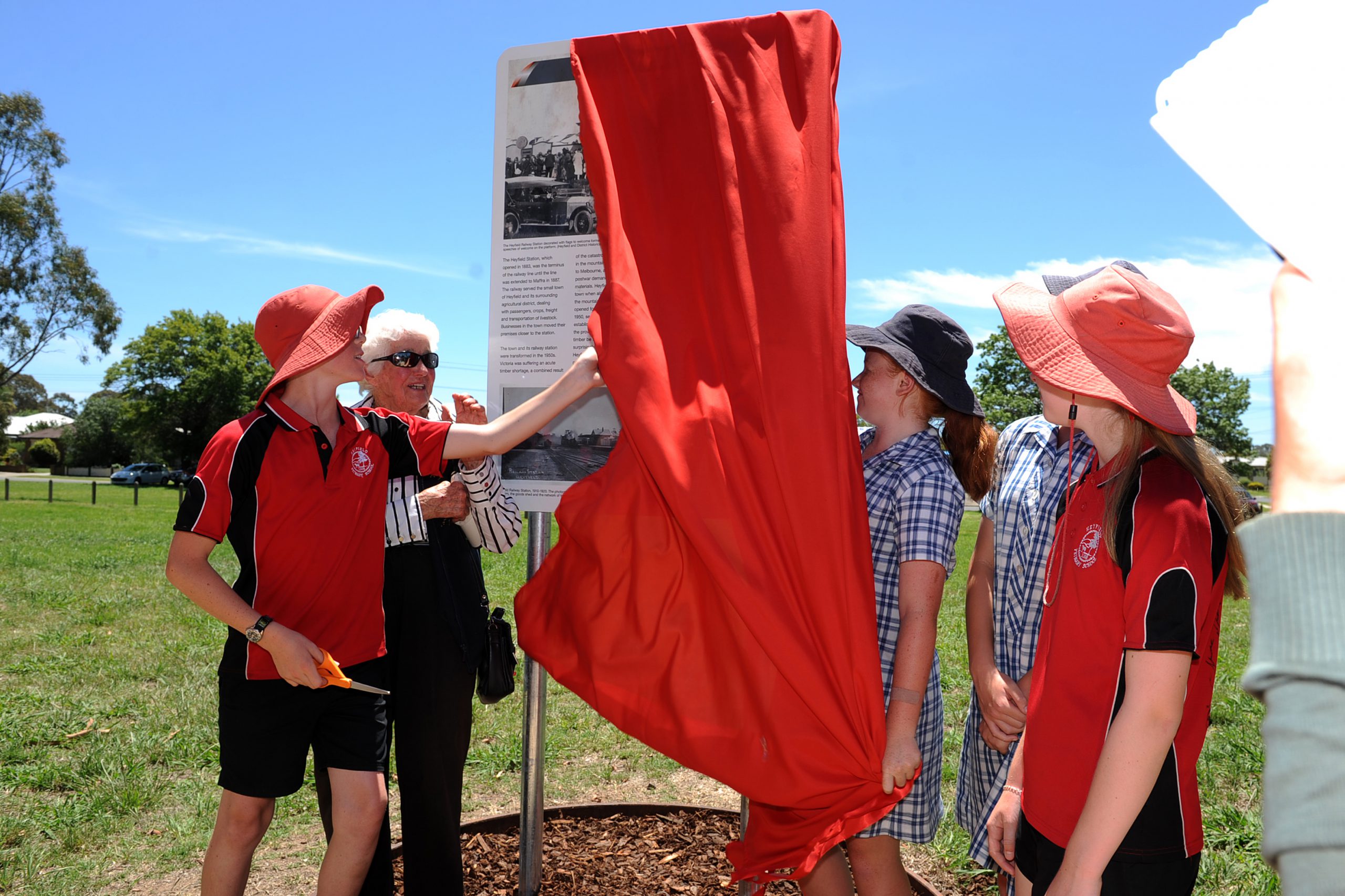 About 100 schoolchildren gathered around as the rail trail’s committee launched the signs at Heyfield’s Apex Park on Wednesday, December 13.