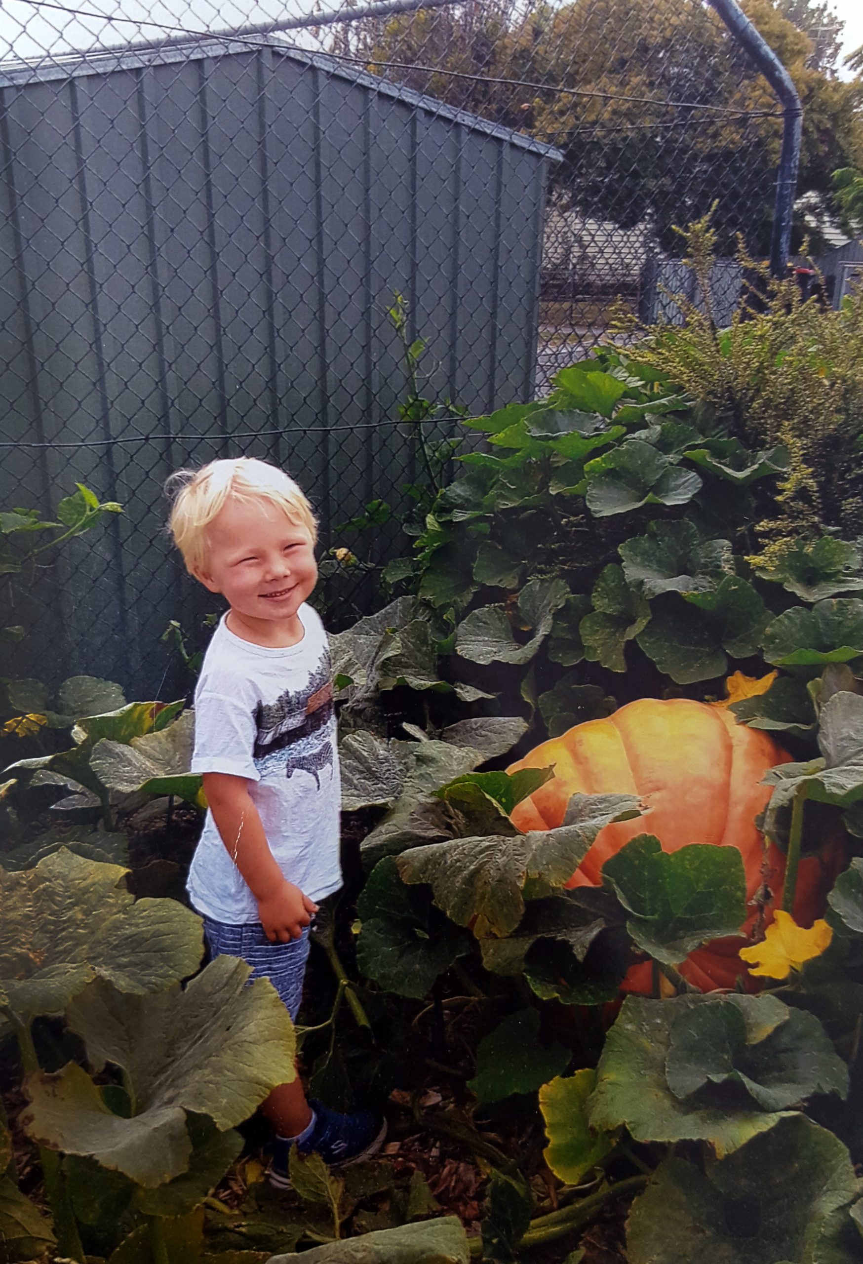 Each year the neighbouring kindergarten children have been able to watch through the fence as the pumpkins grow, and some years, have been able to have their photographs taken in the garden bed alongside the impressive fruit.