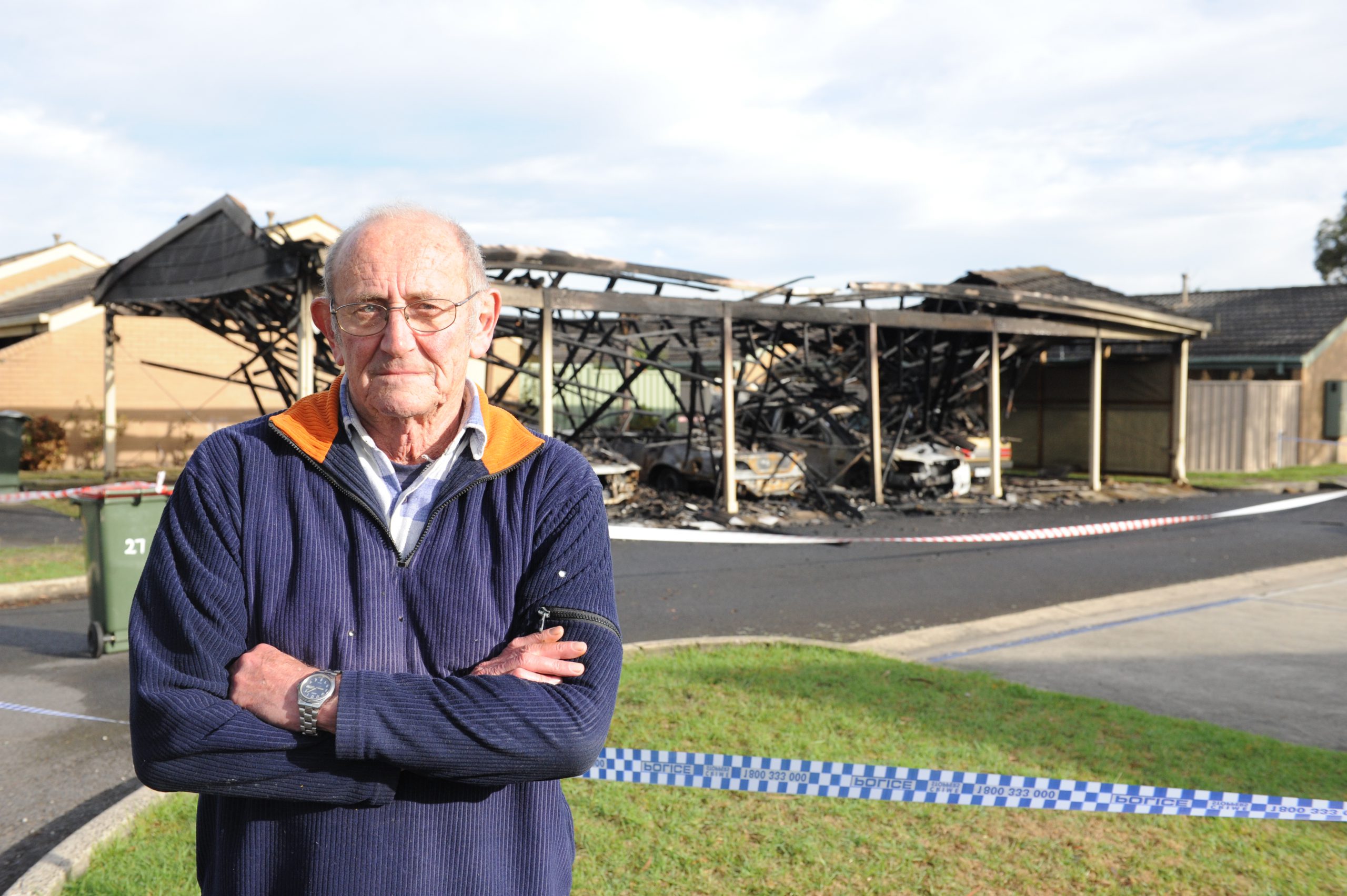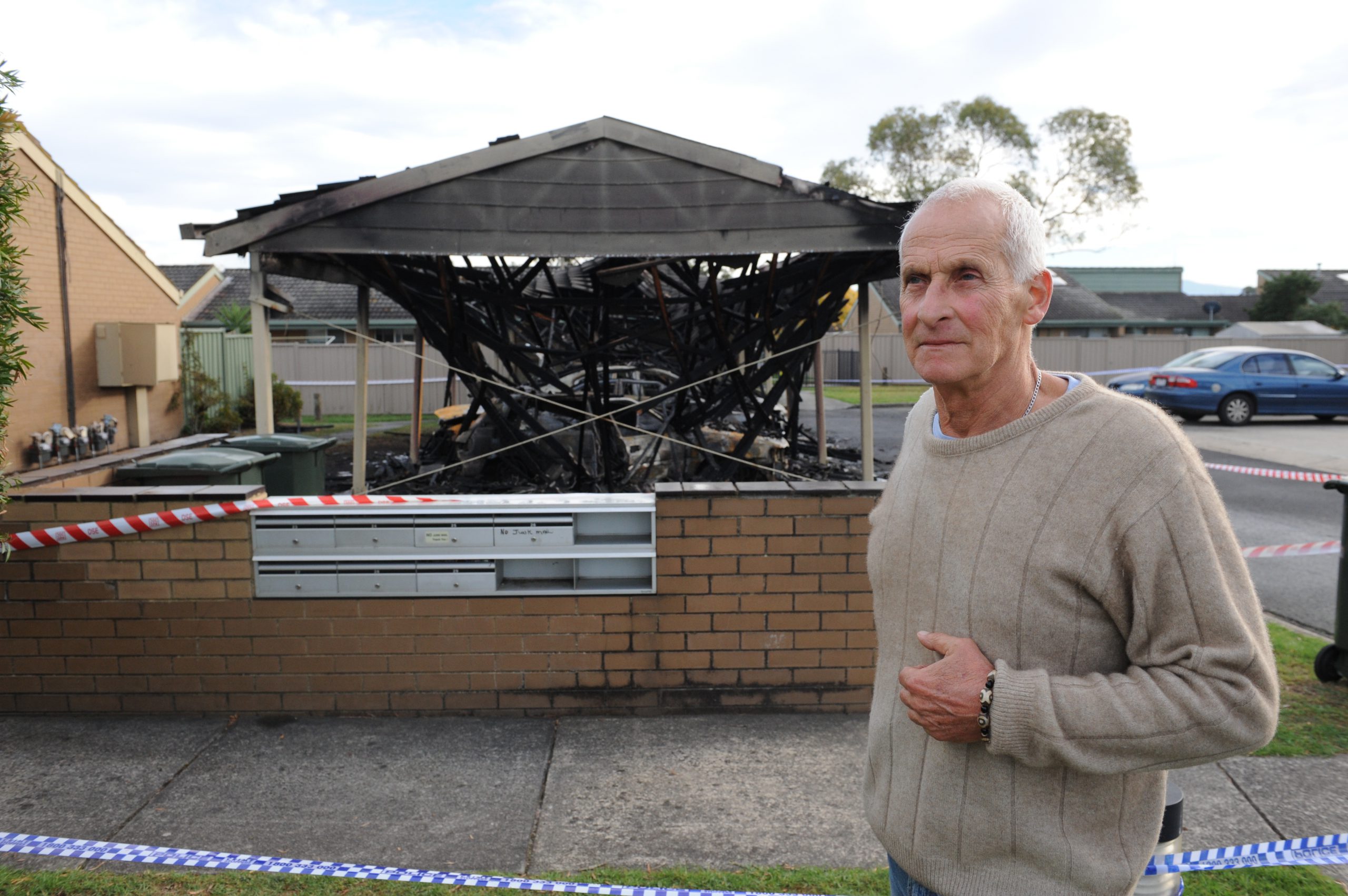 Newborough pensioner Graham Bruce has described the “traumatic” moment he discovered his car alight in a carport outside his Tresswell Avenue unit.
