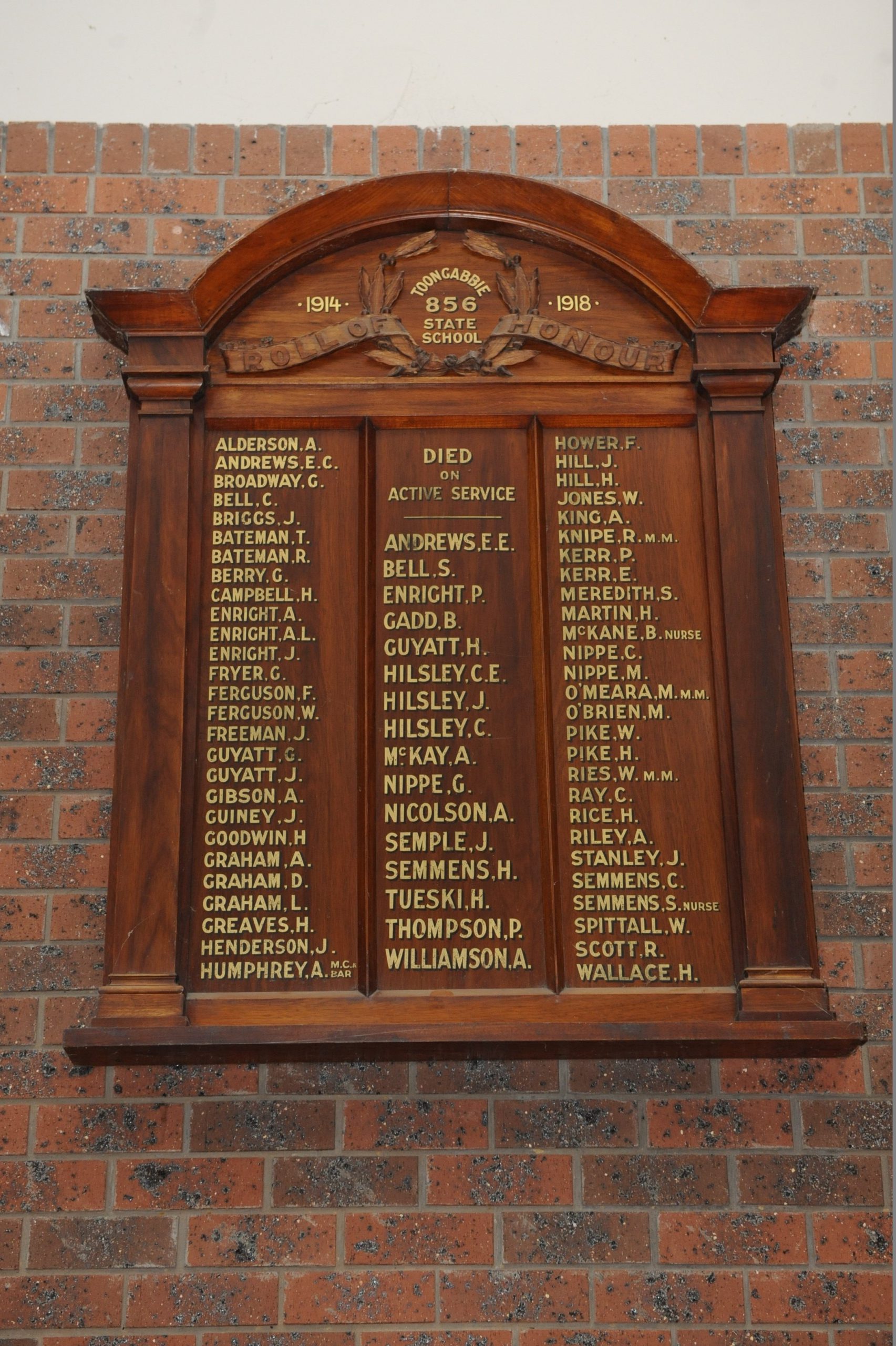 Toongabbie Centenary of Armistice committee member Graham Berrett said the World War I honour board originally hung in the old Toongabbie School attended by those whose names appear on the plaque and was moved to the Mechanics’ Institute when the school building was demolished.