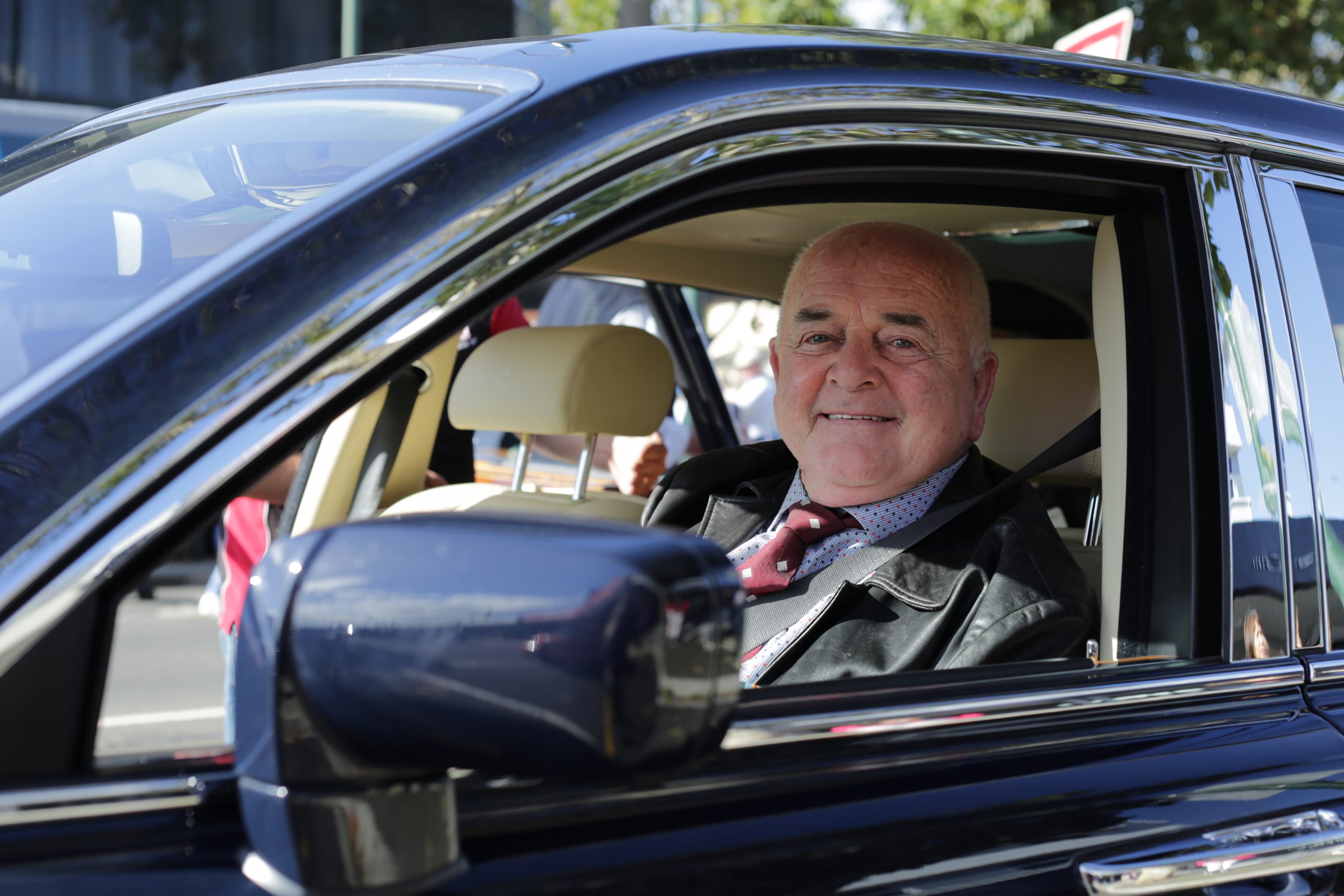 Traralgon veteran John Van Berkel, 74, travelled down Franklin Street aboard a Rolls Royce.