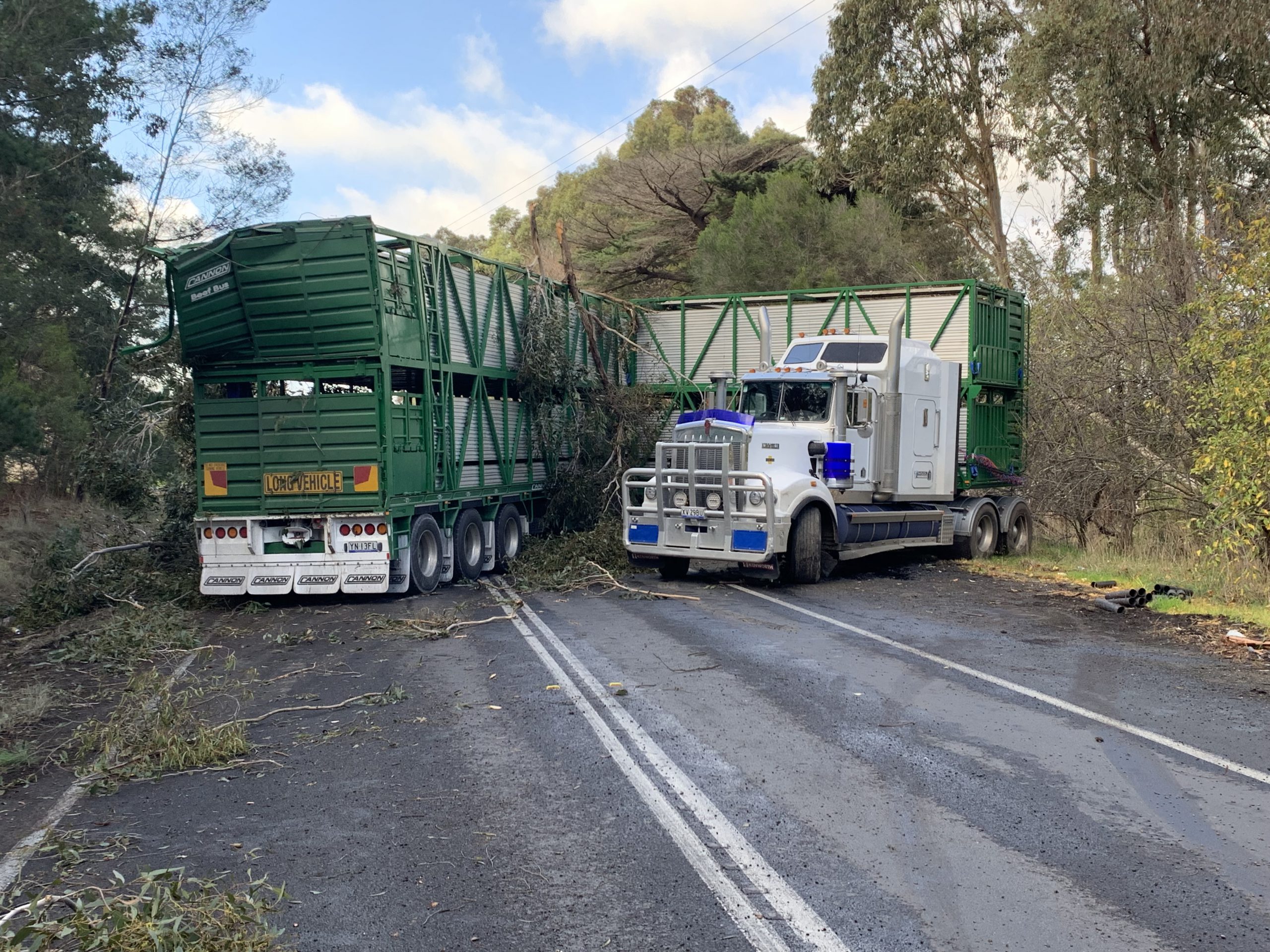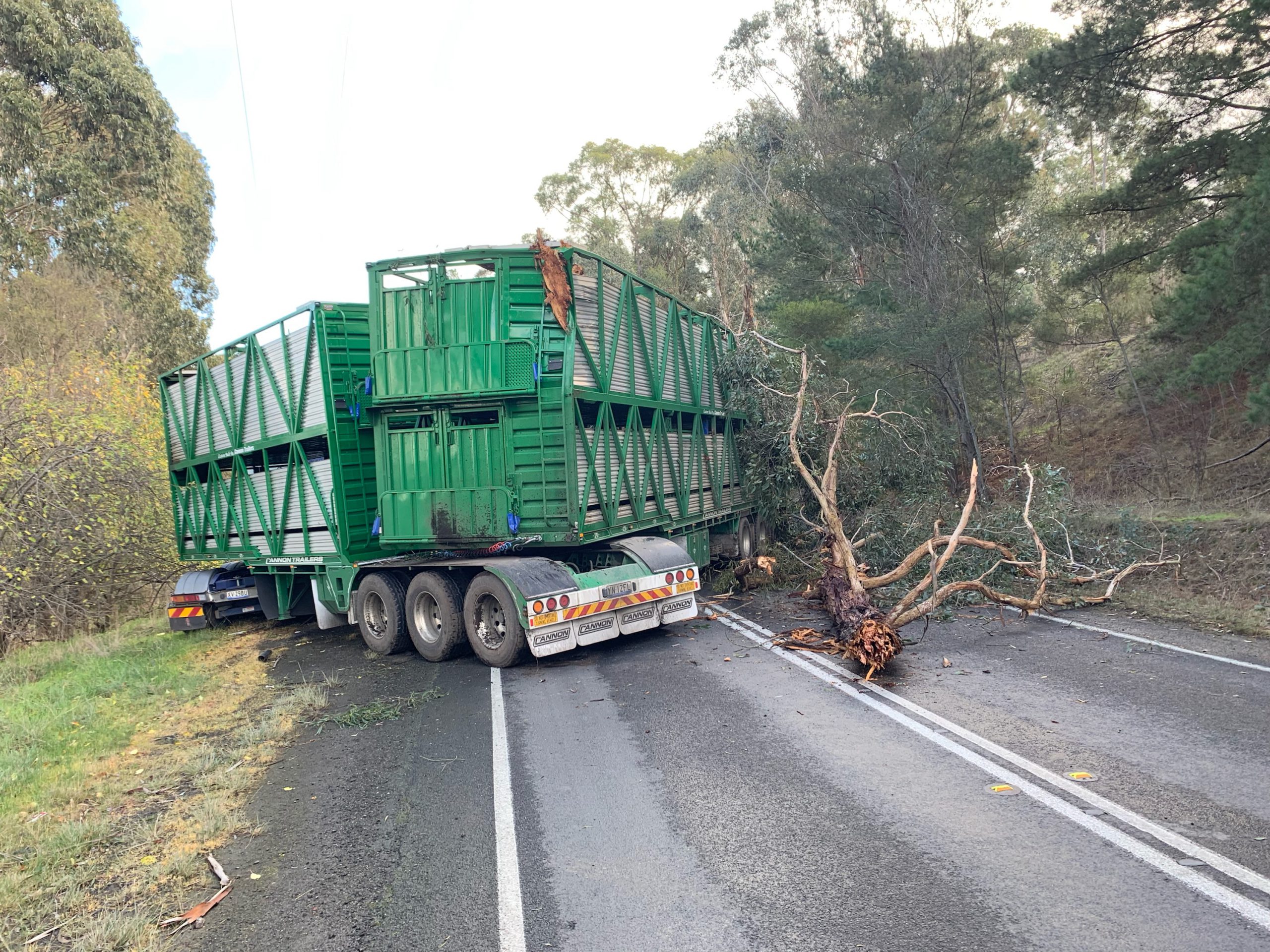 “The rear trailer made contact with the left-hand-side shoulder which caused the vehicle to lose control and jackknife on the road,” Moe First Constable Mick Gauci said.
