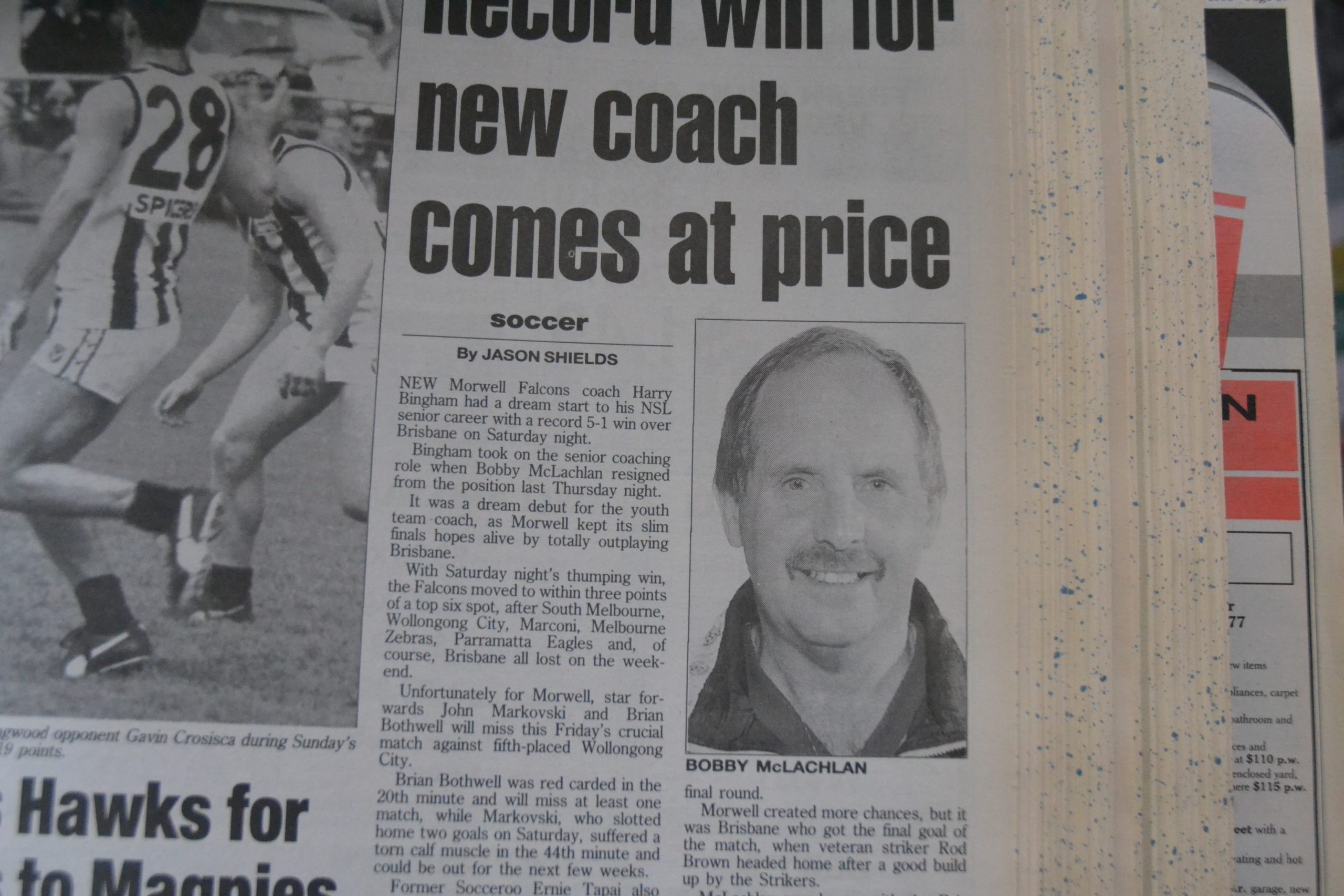 In better news, Falcons were closing in on the signing of renowned Socceroo forward Warren Spink, although a $24,000 transfer fee from Malaysian side Perak was hanging over his head.