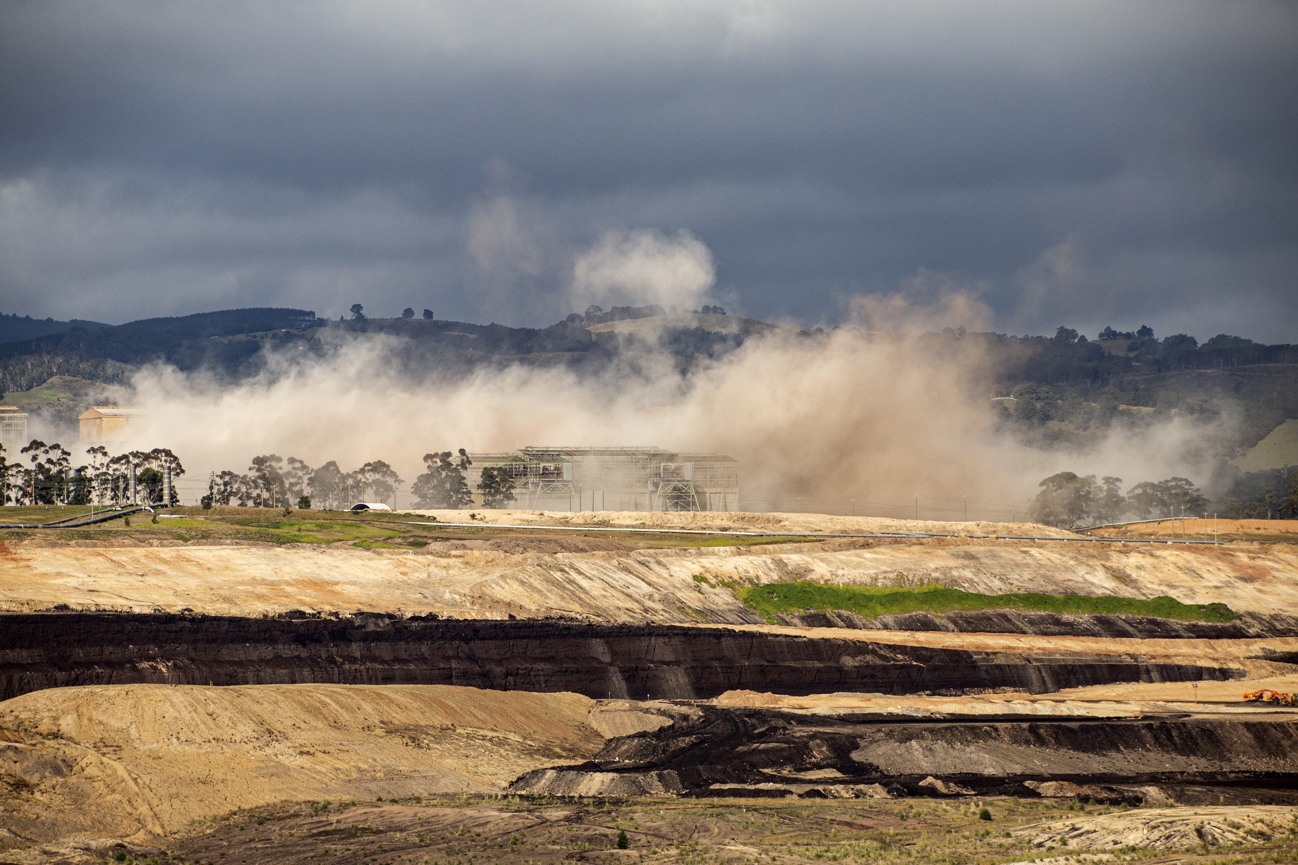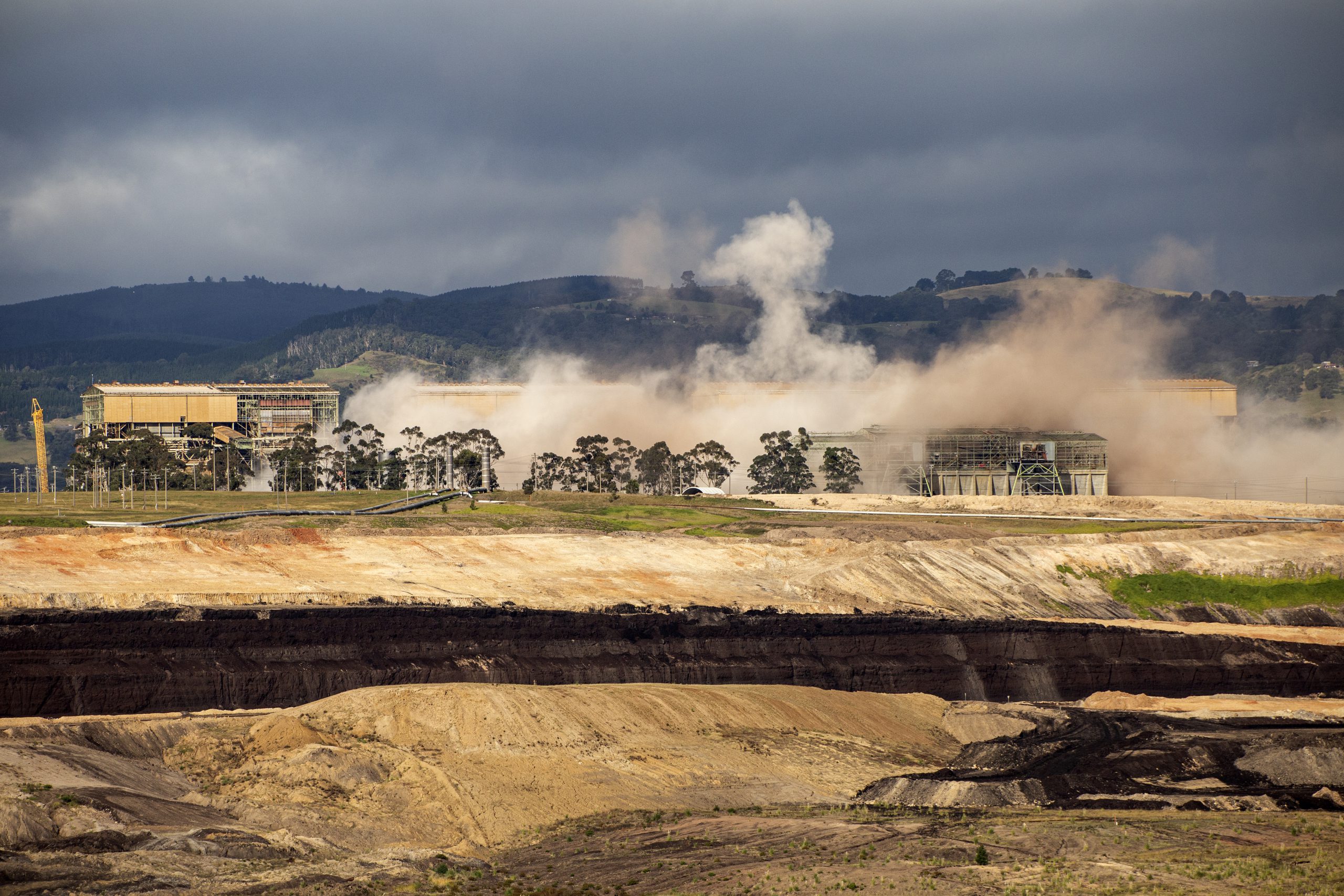 ENGIE set up two water systems including a 37-metre high water curtain to help disperse dust of which some lingered briefly over the mine void for a few minutes after the collapse.