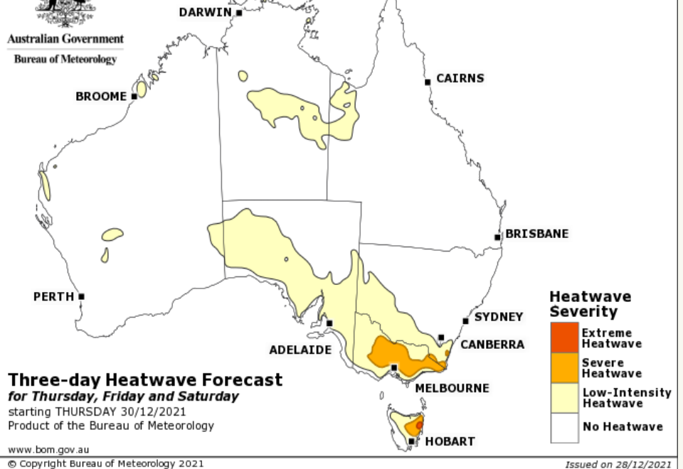 The Australian Bureau of Meteorology has forecast a severe heatwave for some parts of Victoria, with other parts classified as a low intensity heatwave.