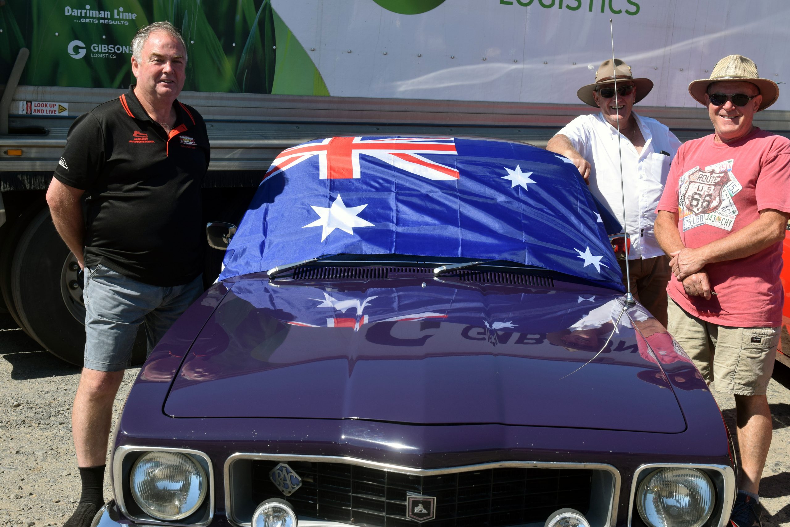 Australian flags were sprawled across the windscreen of some cars, alongside the Holden lion logo that has become instantly identifiable with Australia.
