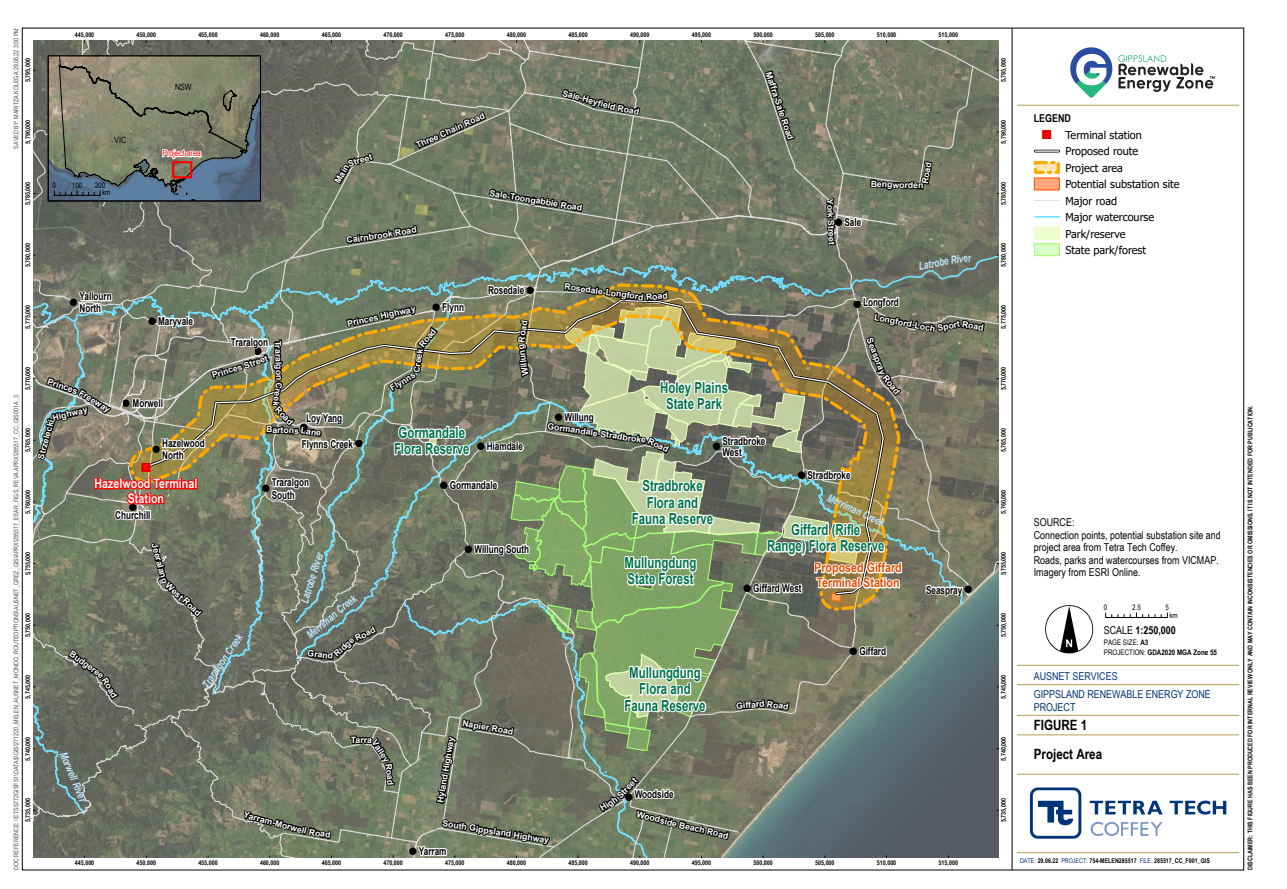 The power line is being developed as part of the Gippsland Renewable Energy Zone to transmit electricity from 11gigawatts of planned renewables projects.
