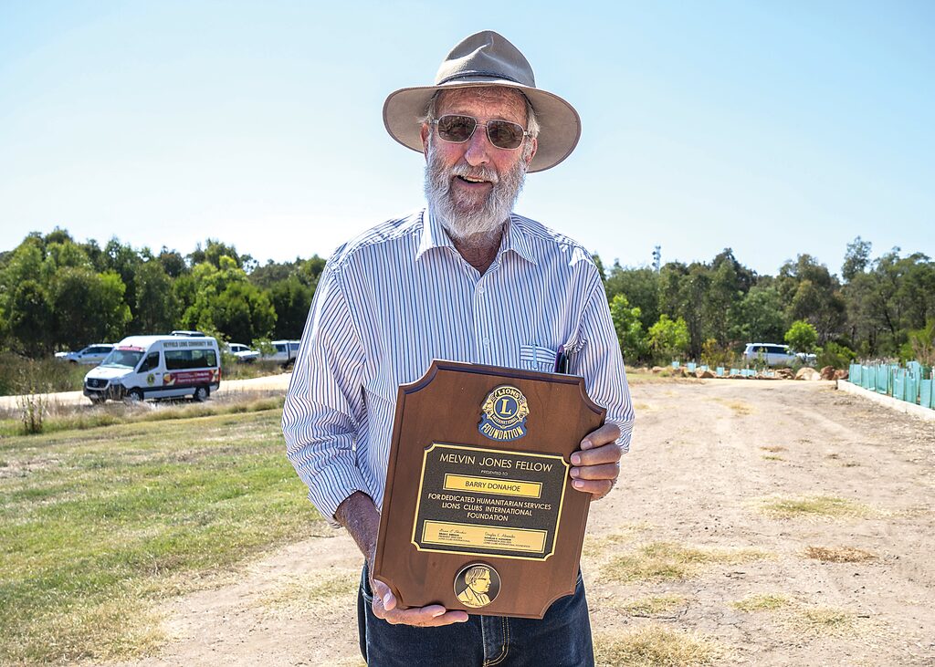 Australian Lions Foundation chairman, Tony Benbow, presented Mr Donahoe with the Melvin Jones Fellowship, the Lions Club’s highest honour given to individuals representing humanitarian qualities such as generosity, compassion, and concern for the less fortunate, for his vital role in the Heyfield Wetlands viewing platform project and work within the Heyfield community.