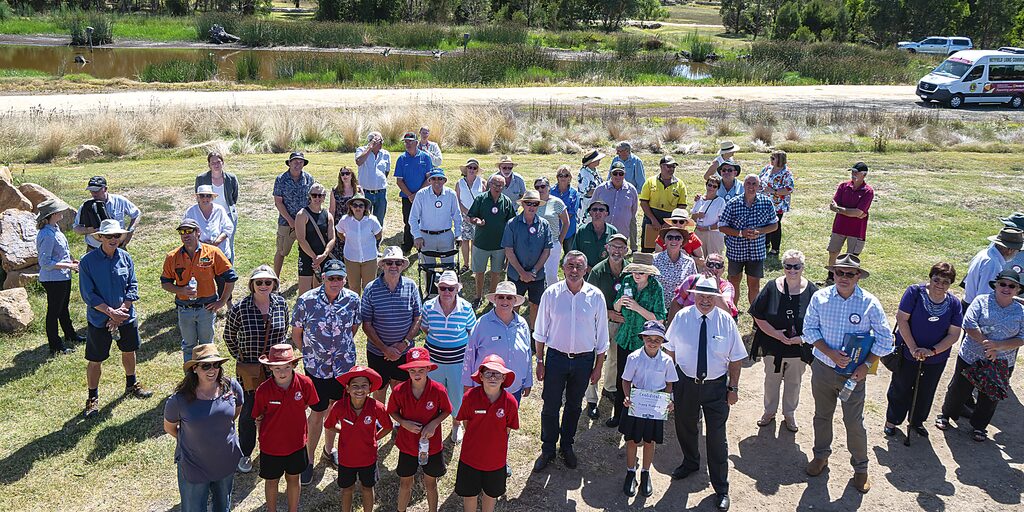 The modest Mr Donahoe thanked the extensive list of volunteers and organisations for their contributions to the project, as the sun blistered down, heating the sandy-coloured gravel under guests’ feet at the Heyfield Wetlands last Thursday.