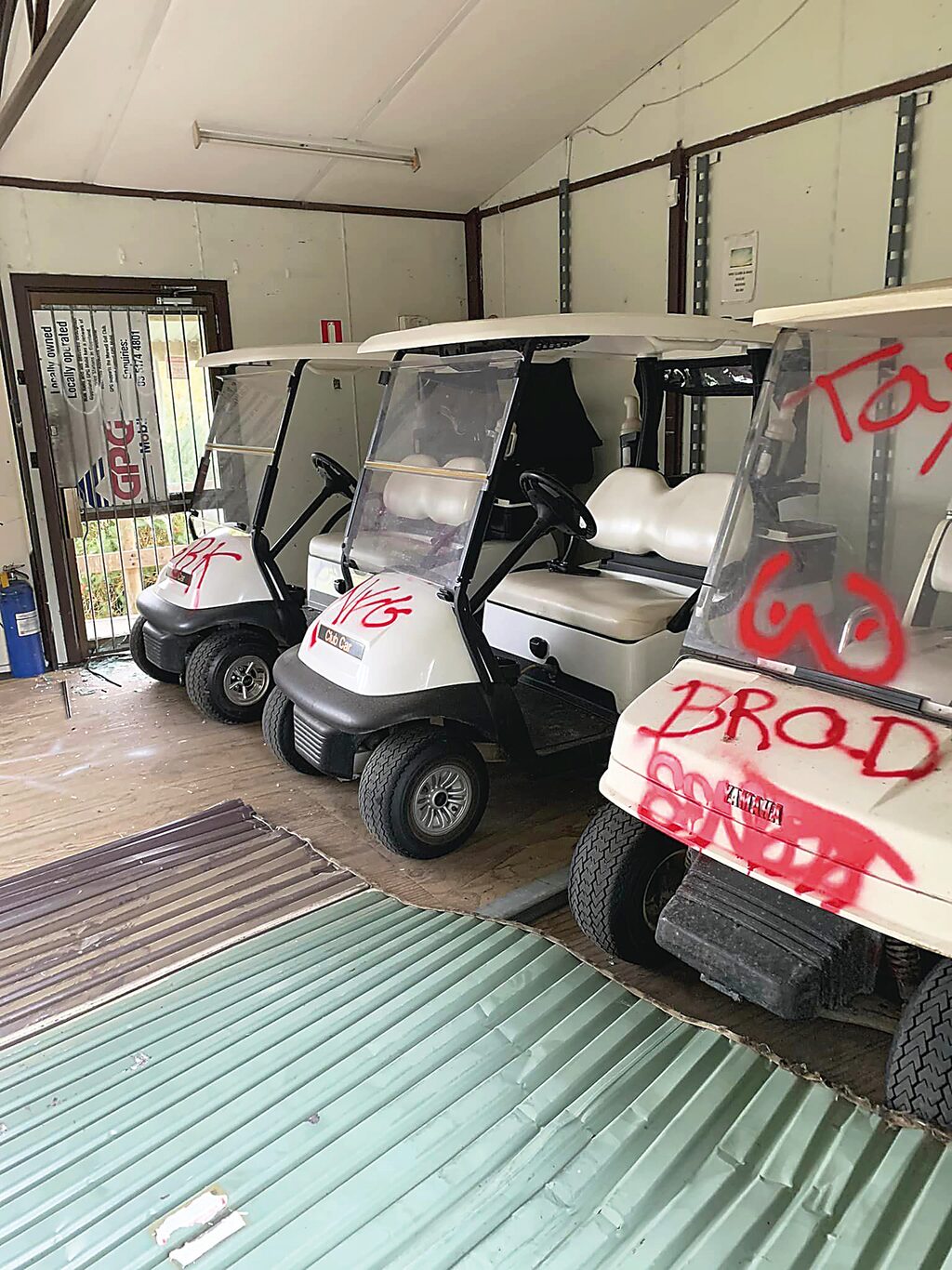 By ZAIDA GLIBANOVIC MORWELL Golf Club was left devastated after their cart sheds were broken into for the second time in the last month, the vandals leaving behind a $20,000 trail of damage. Club president Eric Harrison, said he was disgusted to find the carts damaged on the morning of Sunday, November 26. It is believed this is the second break-in in a matter of weeks for the club. “Two weeks ago, on the 11th, I believe the same group broke into our members’ cart shed and took our members’ carts out for joyrides,” Harrison said. “They damaged both cart shed doors and took several of the carts out for joyrides, damaged the front ends and crashed them through fences.” In the surveillance video, Harrison said there were several vandals captured on cameras. In the most recent break-in, the vandals have gone further and spray-painted the shed. “They’ve gone into where we keep our hire carts and do the same thing, only this time they’ve gone further and used graffiti. The members are pretty disappointed,” he said. Morwell Police are in the early stages of investigating the break-in. “We’ve given (the Police) all the information we possibly could have,” Harrison said. Since the first break-in, the golf club has installed two new cameras, but that did little to deter the group of offenders from coming back. “They were there at 1.59am on Sunday morning and still there at 3.30am (Sunday, 26) around the clubhouse and went for joyrides for a couple of hours with the carts,” he said. Waiting on the Police investigation, the team at Morwell Golf Club said they will need to increase security to feel safe again. “We need to instil trust back in our members,” Harrison said. The golf club is considering installing more cameras, barriers and bollards to prevent opportunistic vandals from taking advantage of the course. “We’ve had a couple of windows broken a long time ago, but nothing like this before,” Harrison said. In his long tenure at the golf club, Harrison said he has never seen such a brazen act. Concerned about the current crime rates in Morwell, he believes more can be done to prevent this type of crime. “When these guys come around, it’s just blatant damage that they cause for no reason. I can’t see why they would need to break into a golf cart shed and cause as much havoc as they can,” he said. “I’m sure there are different things around the Valley that they can get involved with, not causing havoc everywhere and causing stress to everybody.” With insurance premiums set to rise because of these latest break-ins, Harrison regretfully said that hire cart prices will have to account for the costs. “We’ve got to go through our insurance company, but that again comes back down to our members who have to fork out again to keep everything insured,” he said. Harrison had some choice words to describe the inconsiderate actions of the vandals. “As the president of the golf club, it leaves me pretty annoyed and disgusted that people would think they could go in and ruin somebody else’s belongings,” he exclaimed. “We leave them there in good faith, and these idiots come down and ruin our enjoyment in a sport that we all love. “It’s a community; everyone is on tenterhooks about what they will do next.” Local concerns have mounted after street signage along Crinigan Road in Morwell and its surroundings have also been heavily vandalised in the last few weeks – leaving many to wonder if the same people who broke into the Morwell Golf Club are the ones who have been damaging public property. Obscenities and gang signs in red spray paint cover the streets as Morwell Police continue to try and find the group of people responsible. “We’re in the local area of the Falcons Soccer Club, Fortuna Soccer Club … I just hope that they (the vandals) leave them alone,” Harrison said. “As a community that everybody seems to want to knock all the time, we don’t like this sort of stuff. We can be a very good community around the place. There’s new land coming up for sale in this local area, and we want people to come here; we don’t want to scare them away.” Morwell local Nikki Te Paa, has been a part of the club for the past 26 years. Now in her 70’s, Te Paa loves her Morwell Golf Club community, but was left shattered when she discovered her golf cart suffered the most extensive amount of damage in the vandalism incident. “I was devastated. I left my key in it because I thought it was secure, but they used the key, and they used my cart as a battering ram to break down the roller door,” she said. “One wheel was facing right, and one wheel was facing left.” Still in shock and feeling unsafe, Te Paa said there were some disappointed faces at the club. “We’re feeling anger and frustration, because I think it will happen again because there seems to be no consequences for these actions.” An alleged arrest has been made in relation to graffiti on Crinigan Road, which may have some connection to the Golf Club’s break-in.