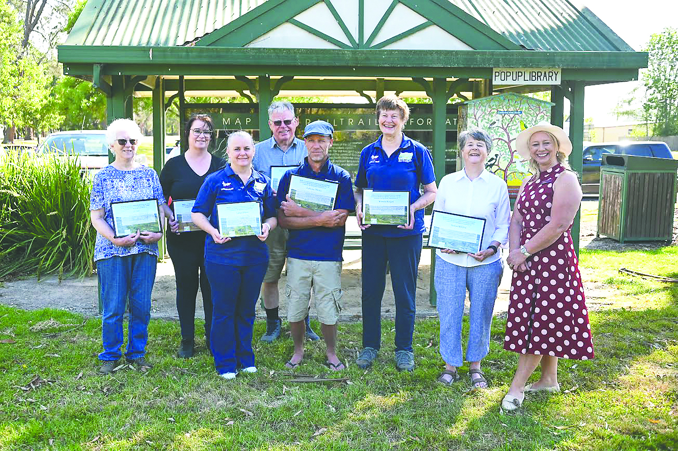 Kudos: Boolarra community recognition awards went to Liz Black, Denise Oliver, Juliette Oliver, Doug Black, Callum Oliver, Rhonda Keegan and Denise Schiller, receiving congratulations from Latrobe City Councillor, Leanne Potter. Photograph supplied