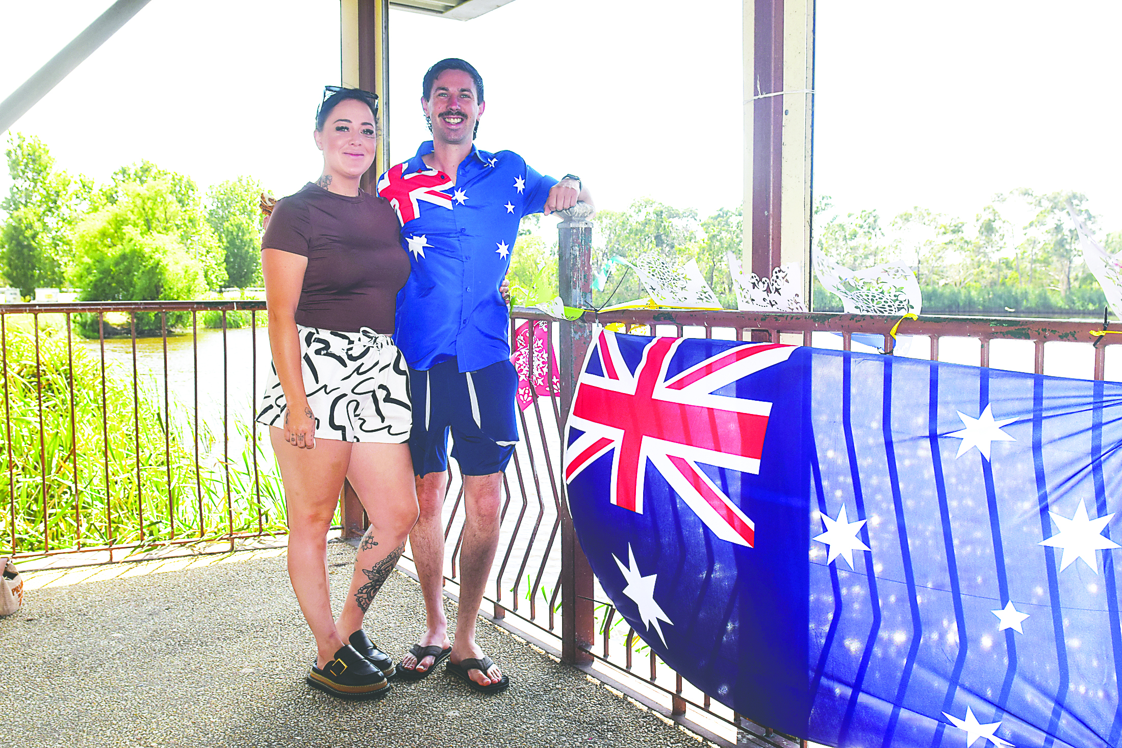 Wear it all over: Morwell pair Shaye Dynes and Simon Steele get in on the fun of Australia Day. Photograph: Blake Metcalf-Holt