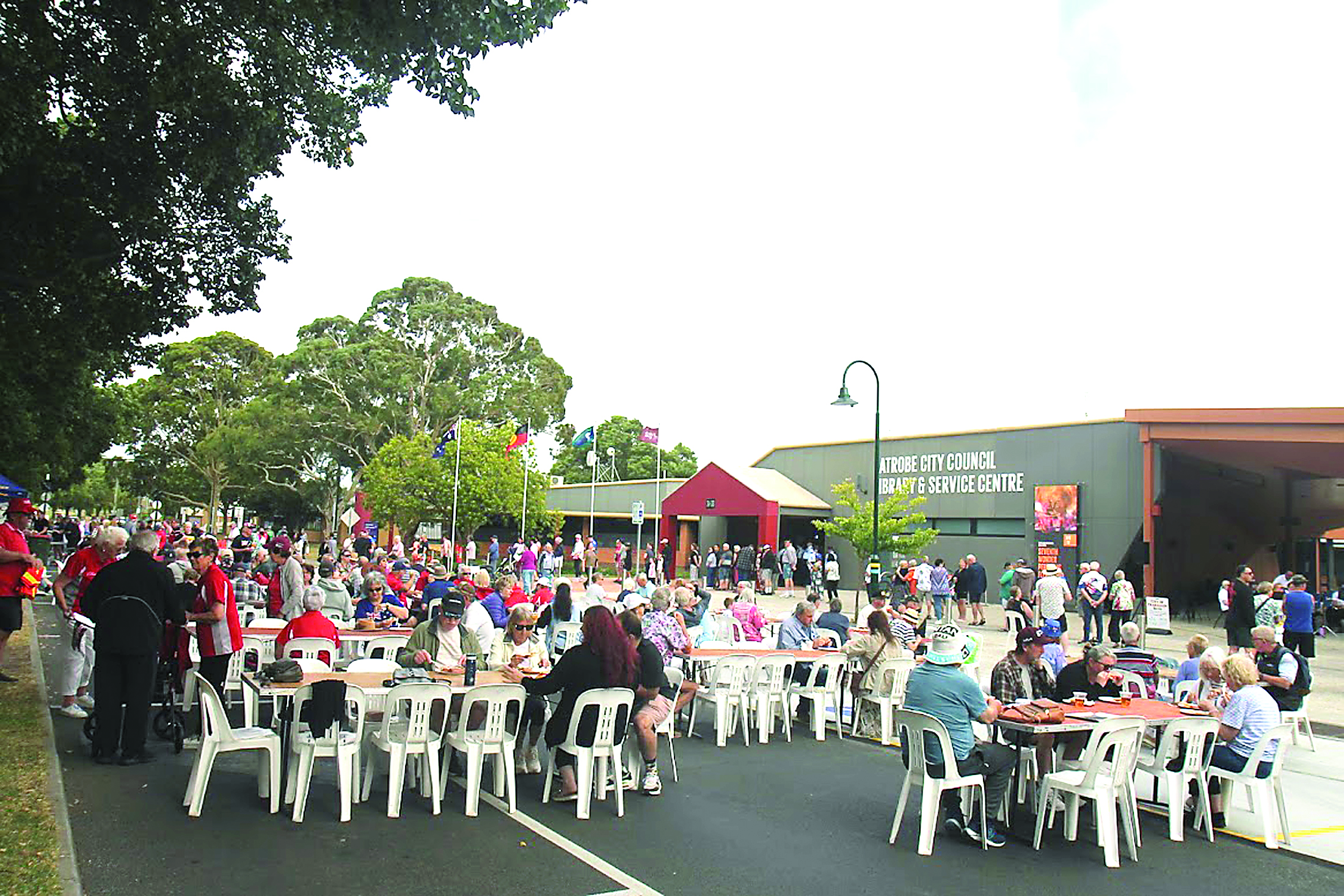 Those who lined up early took a seat along the road outside GPAC, where multiple tables were set up for people to mingle, discussing all things Australia Day.