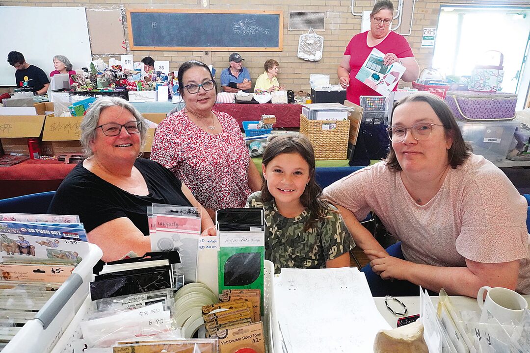 Crafty: Sheryn Maher (Drouin), Michelle McConachie (Traralgon), eight-year-old Sophie Maher (Drouin) and Ashlee Jacka (Cloverlea) enjoying the 1st Morwell Scouts Craft-De-Stash sale. Photograph: Peace Ijiyera