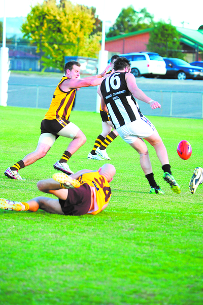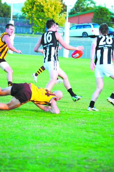 The Hill End and Mirboo North game at Hill End was close all day, with the margin at each break never exceeding five points.