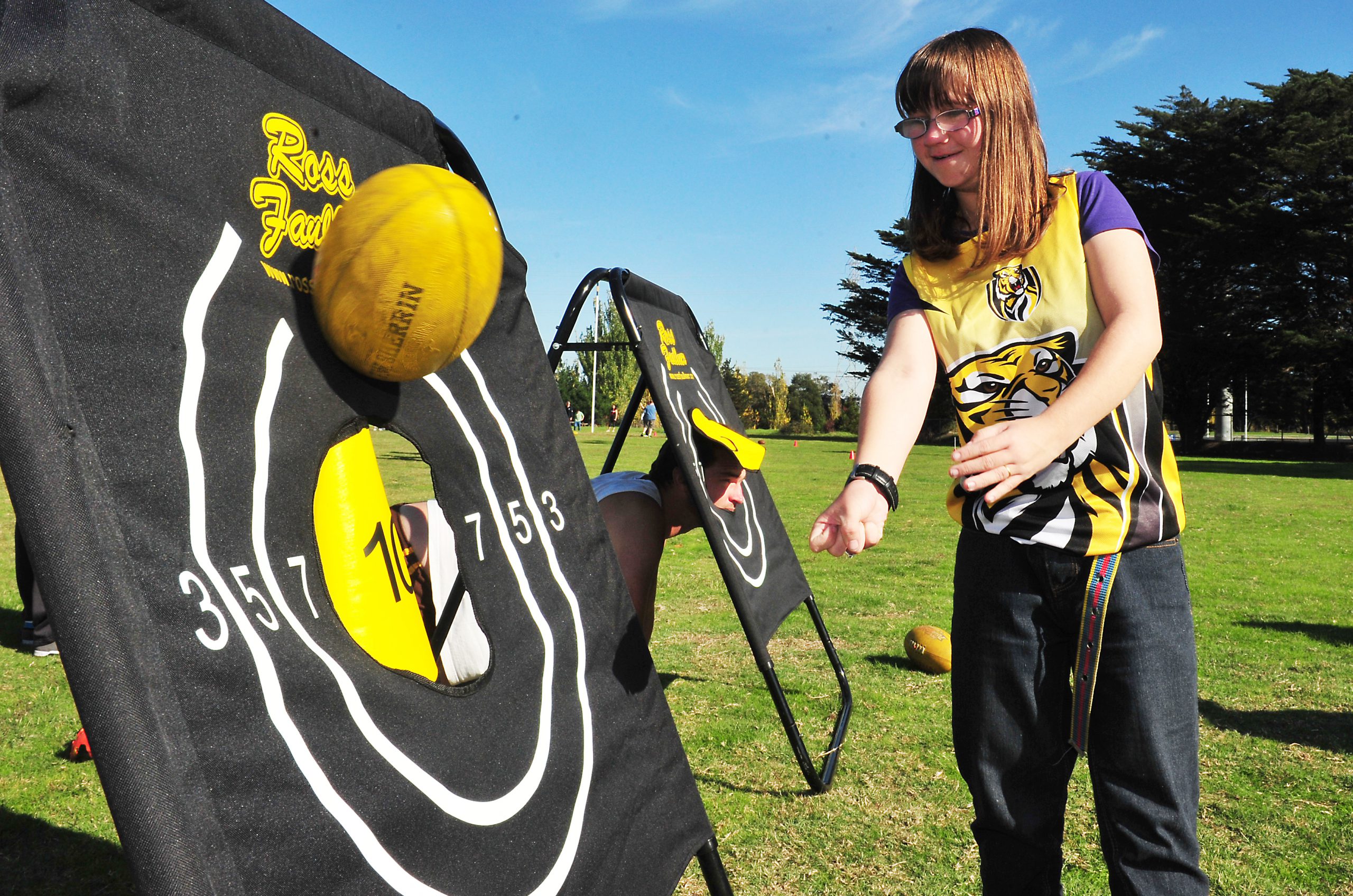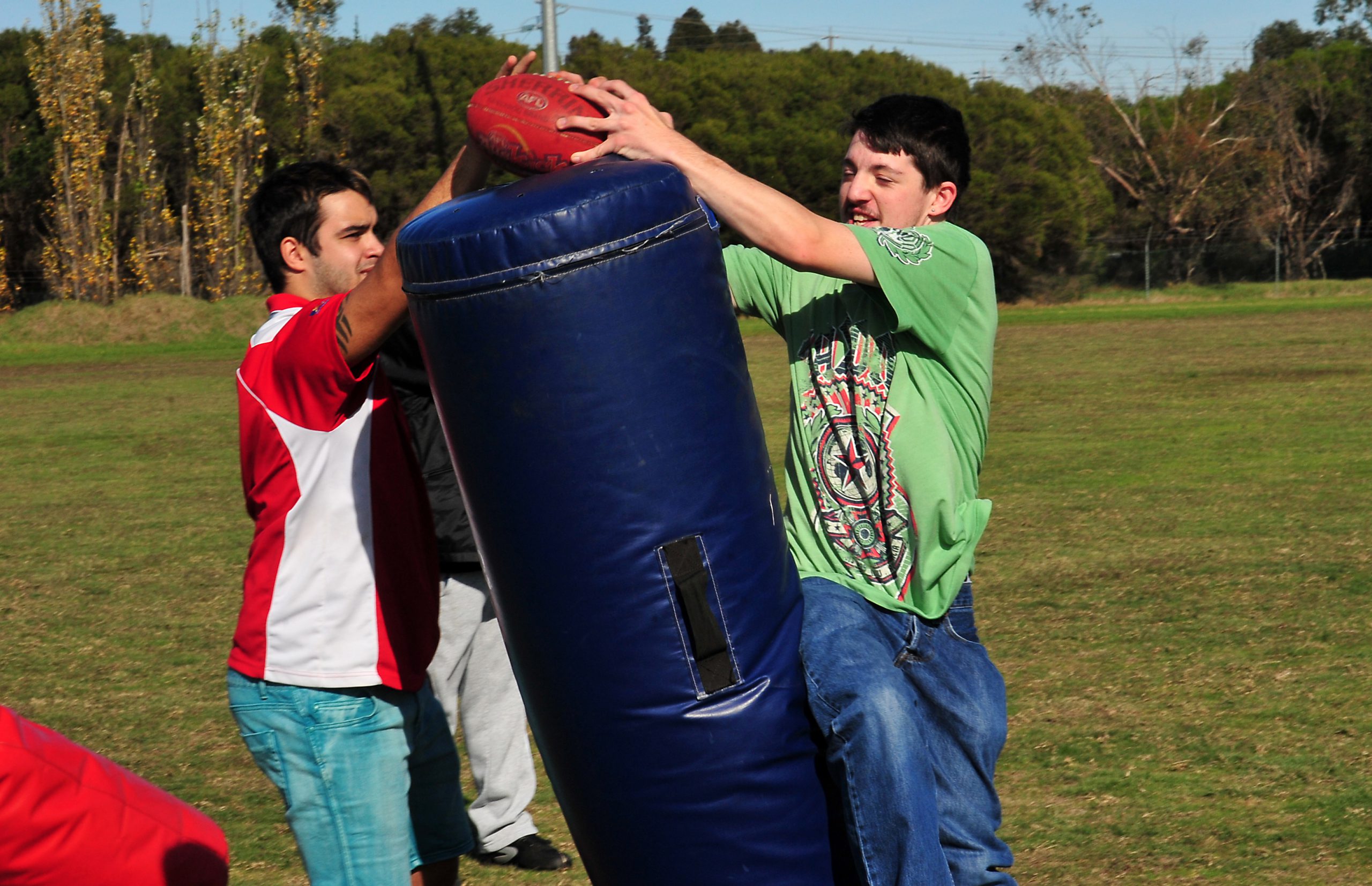Power representatives put about 35 people with an intellectual disability through their paces for Vista Day Services’ second annual ‘footy day’ with the Morwell based club. The VDS enrollees tried their luck at goal kicking, handball targets, ‘speccy’ bags and tackle bags throughout the session.