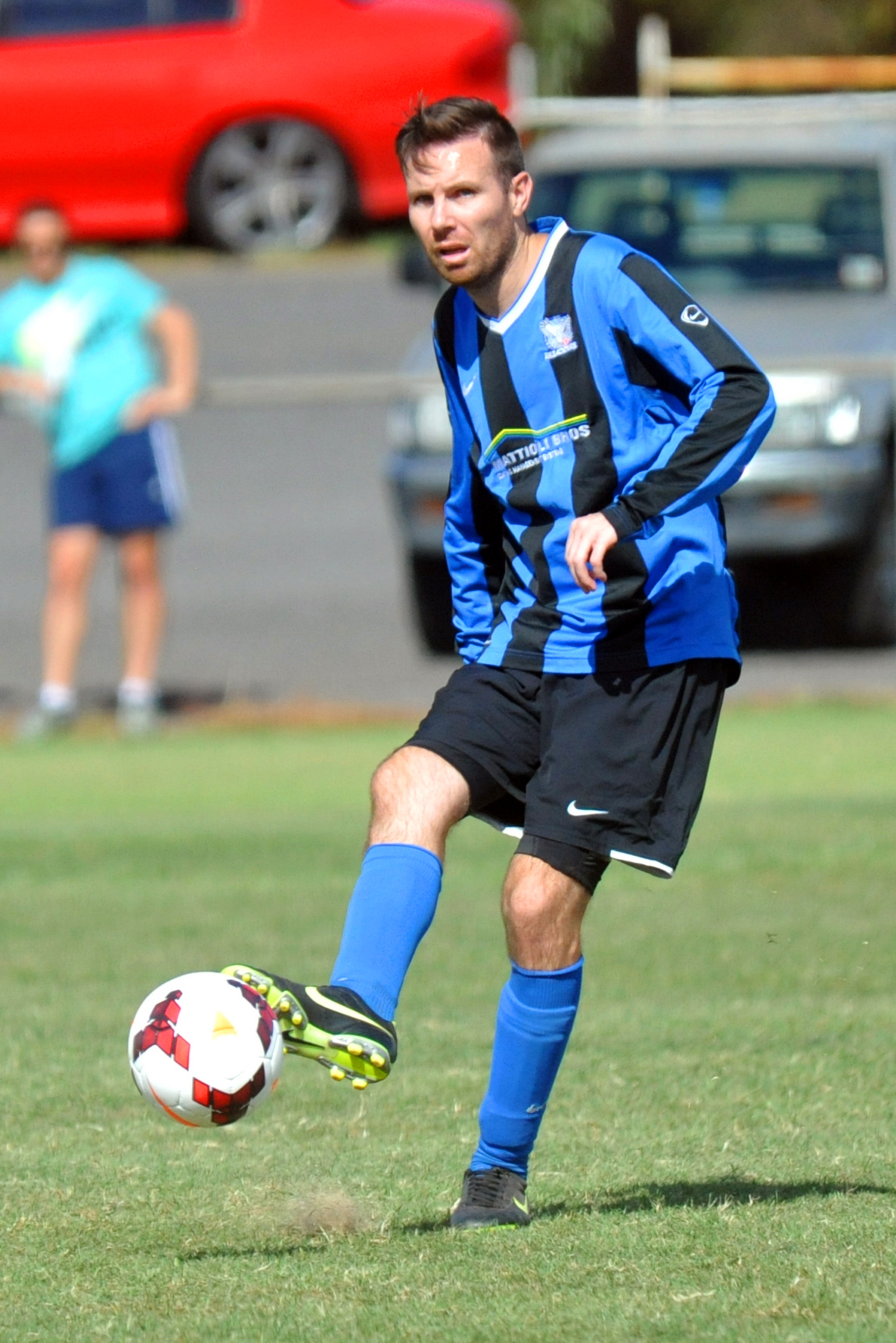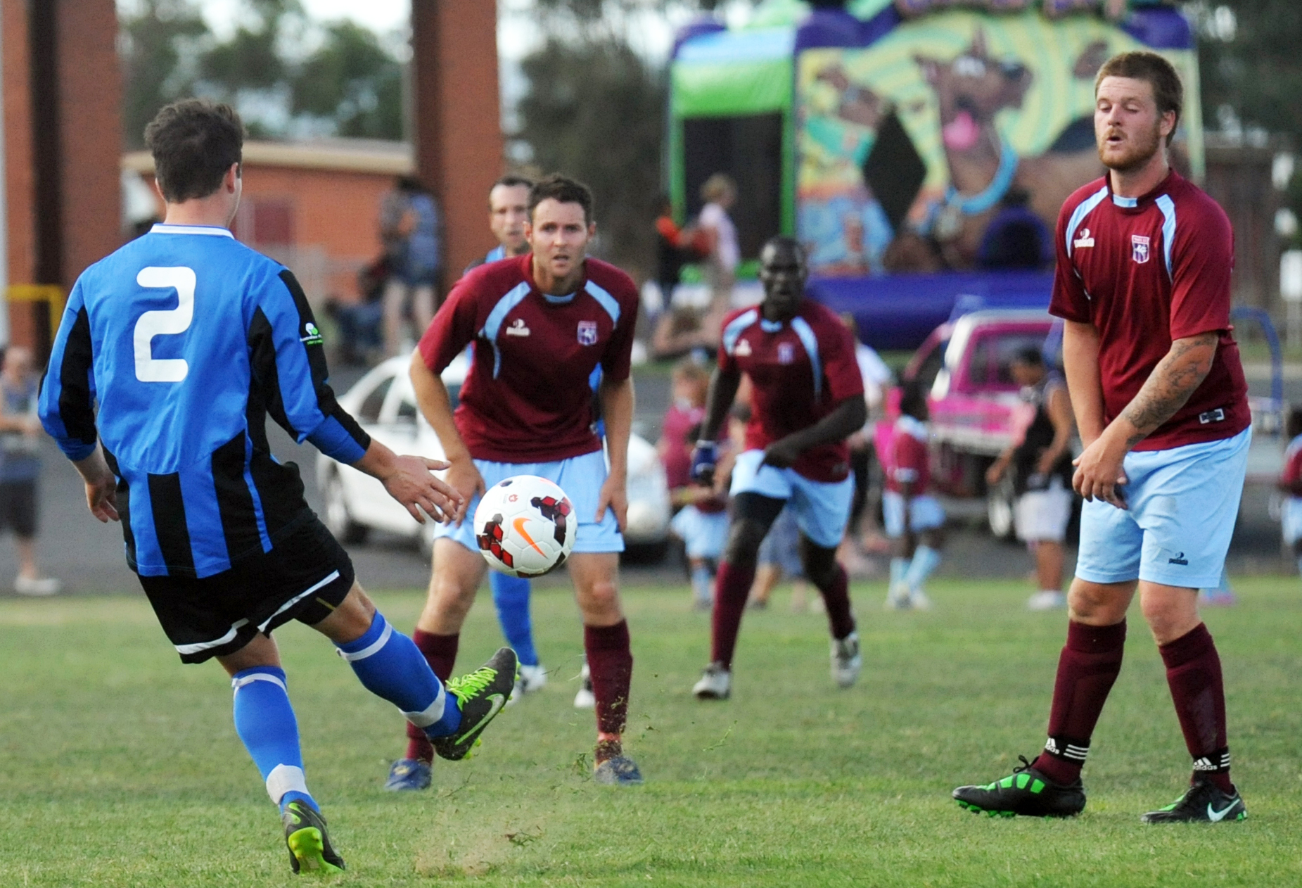A Pegasus defensive lapse on 21 minutes saw the ball fall favourably for Falcons coach Nick D’Alessandro, but his shot was blazed over the bar.