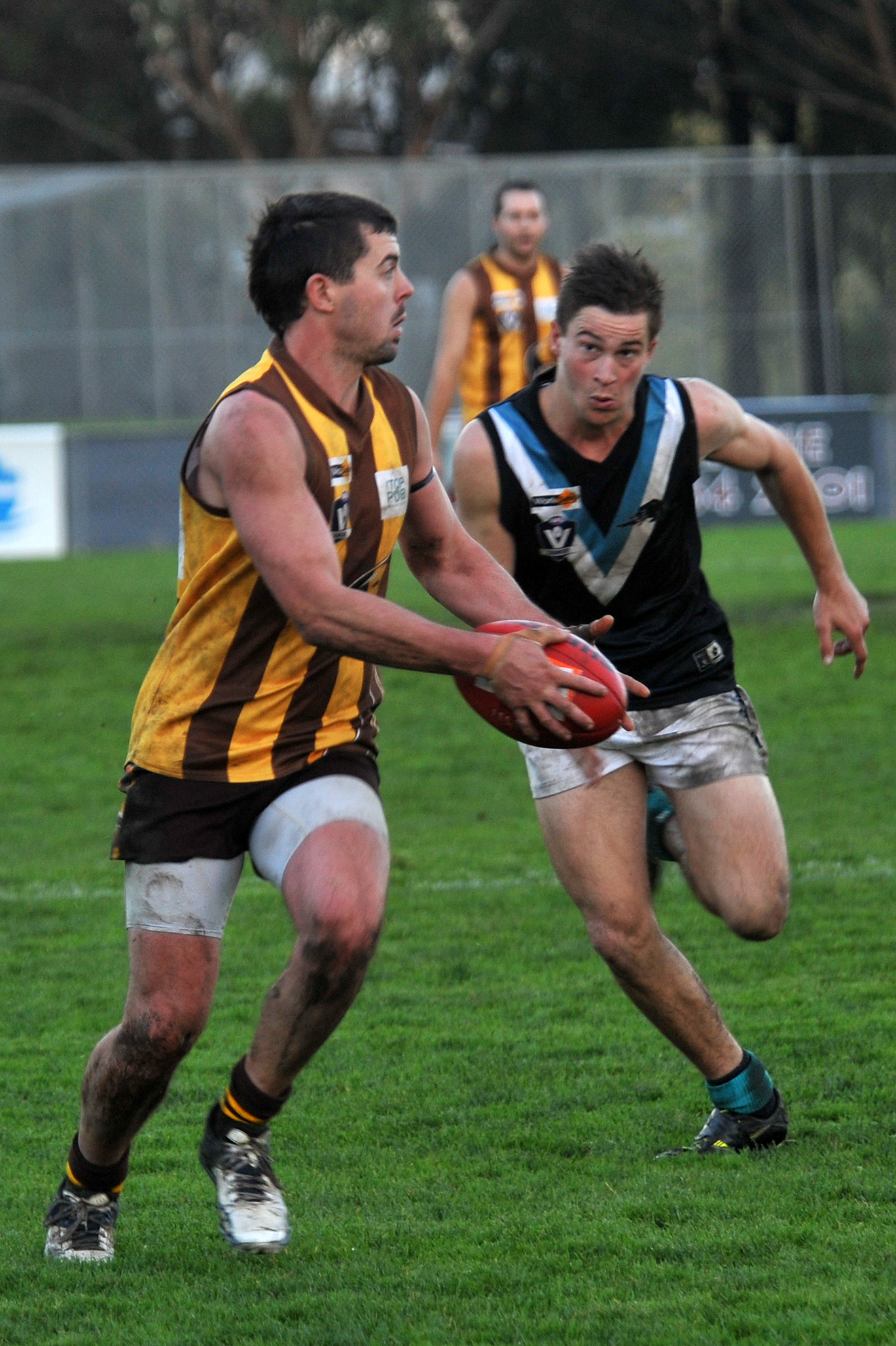 Reliable Hawks forward Shaun Barnes was switched to centre half-back to control Ben Damschke, but the former Elder-Berwick medallist was too quick for his taller opponent.