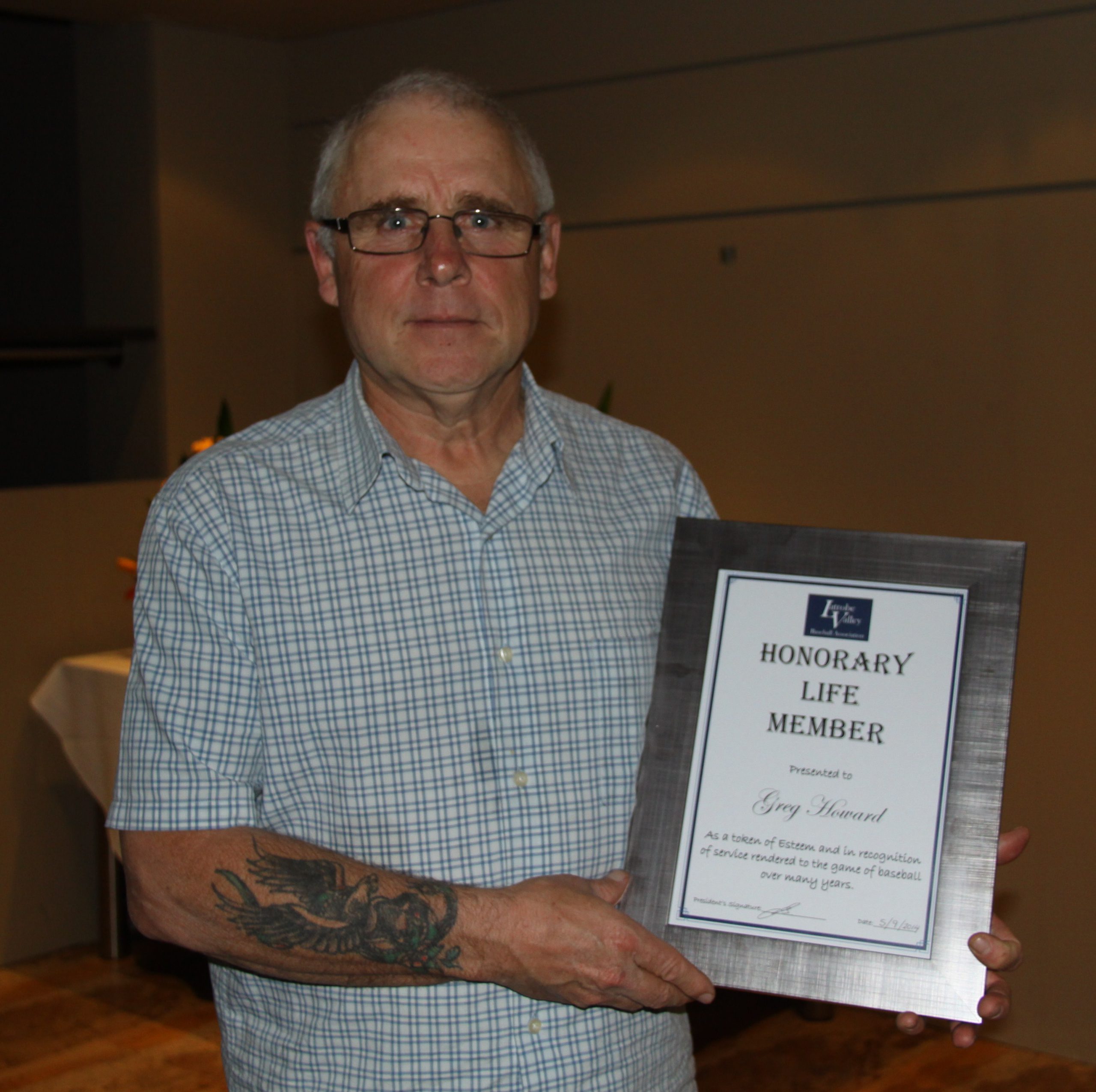 Life membership was awarded to Greg Howard for many years of service to the Latrobe Valley Baseball Association.