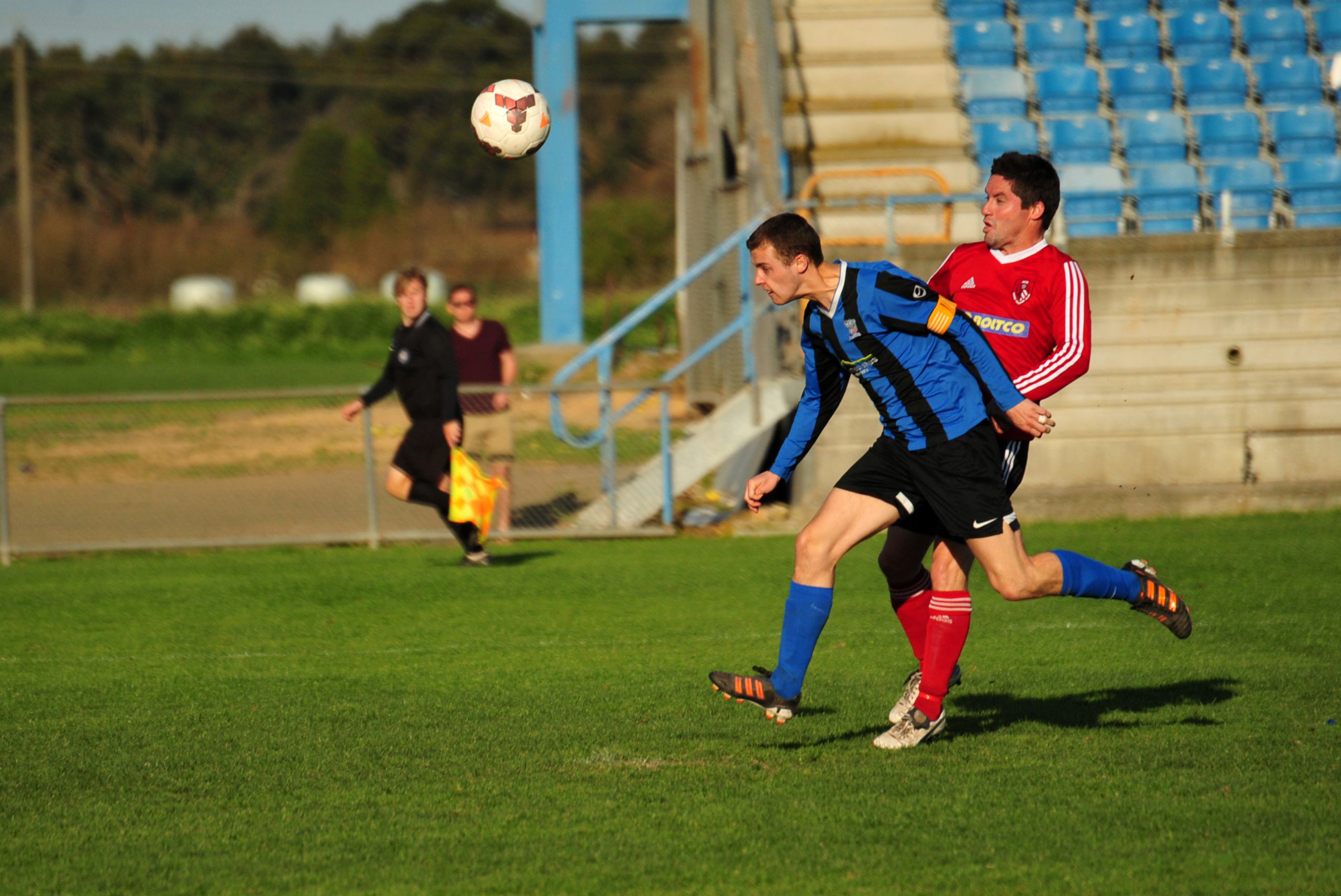Falcons broke quickly to the other end, where coach Nick D’Alessandro was felled around the 18 yard box without reward, before Moe striker Luke Bathgate’s glancing header was deflected by Brooker to end the half 0-0.