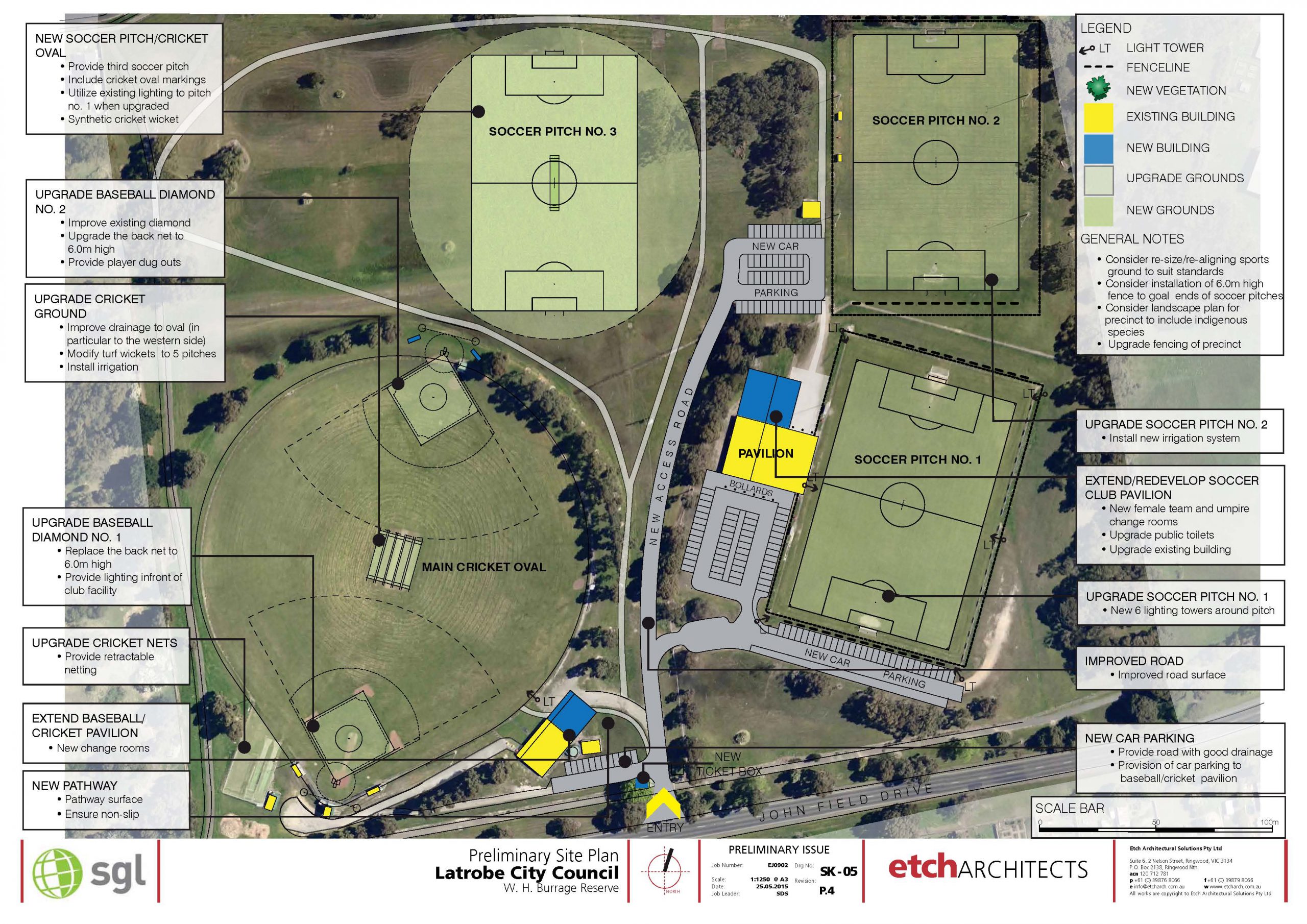 – Improve drainage, irrigation and levelling, and upgrade lighting to competition standard for both soccer pitches ($825,000)