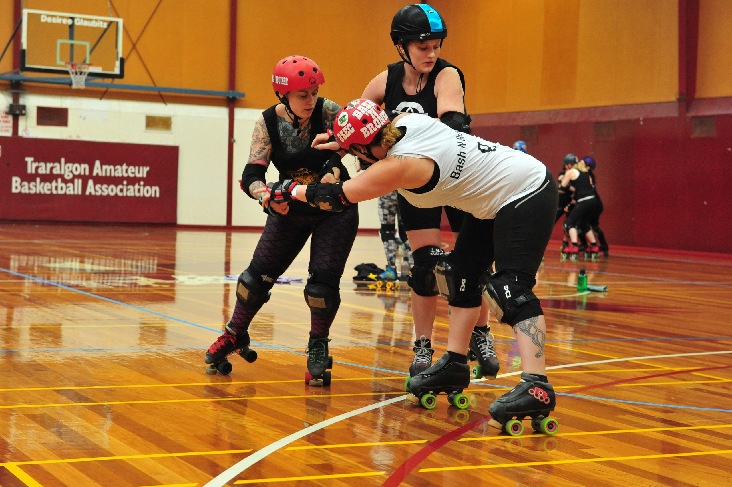 The two-day roller derby bootcamp brought five experienced Australian coaches, each with their own regional style, to the Latrobe Valley to host a range of classes and bouts for skaters of all abilities.