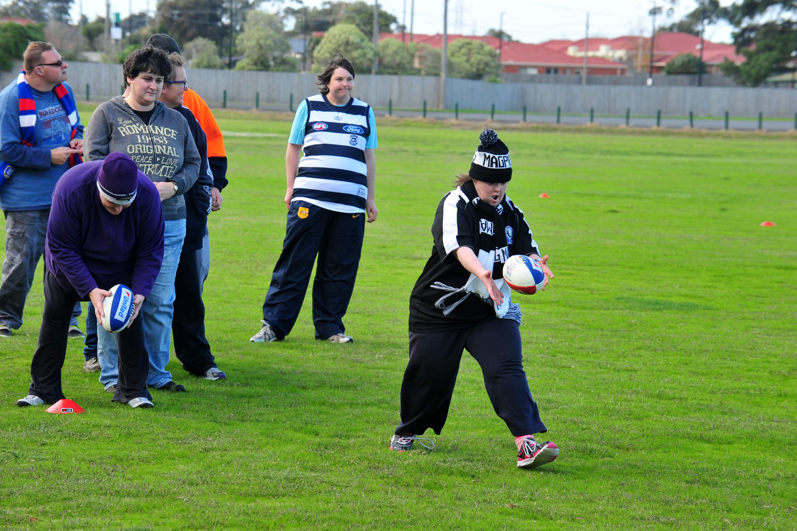 The TAC Cup club put on an Australian Rules skills clinic for a throng of people with a disability in Morwell on Tuesday and had a rousing response from some true footy fanatics.