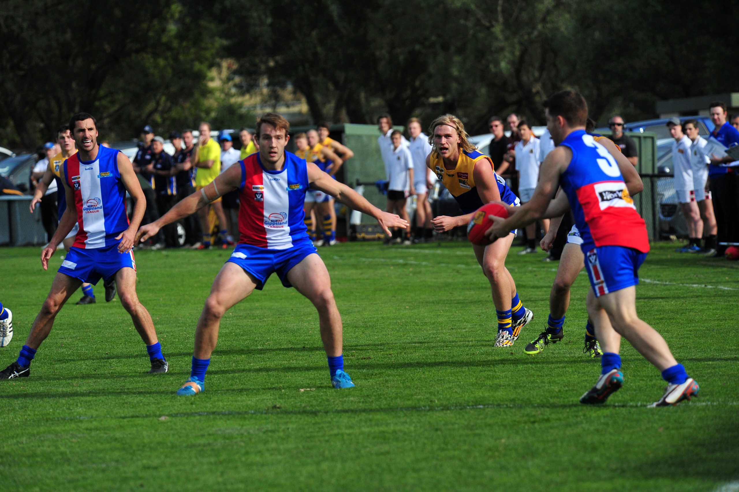 League best and fairest Bob McCallum (Drouin) battled hard to win plenty of it in the ruck, while Chris Dunne (Leongatha) booted five goals on an otherwise off day for the Gippsland forwards.