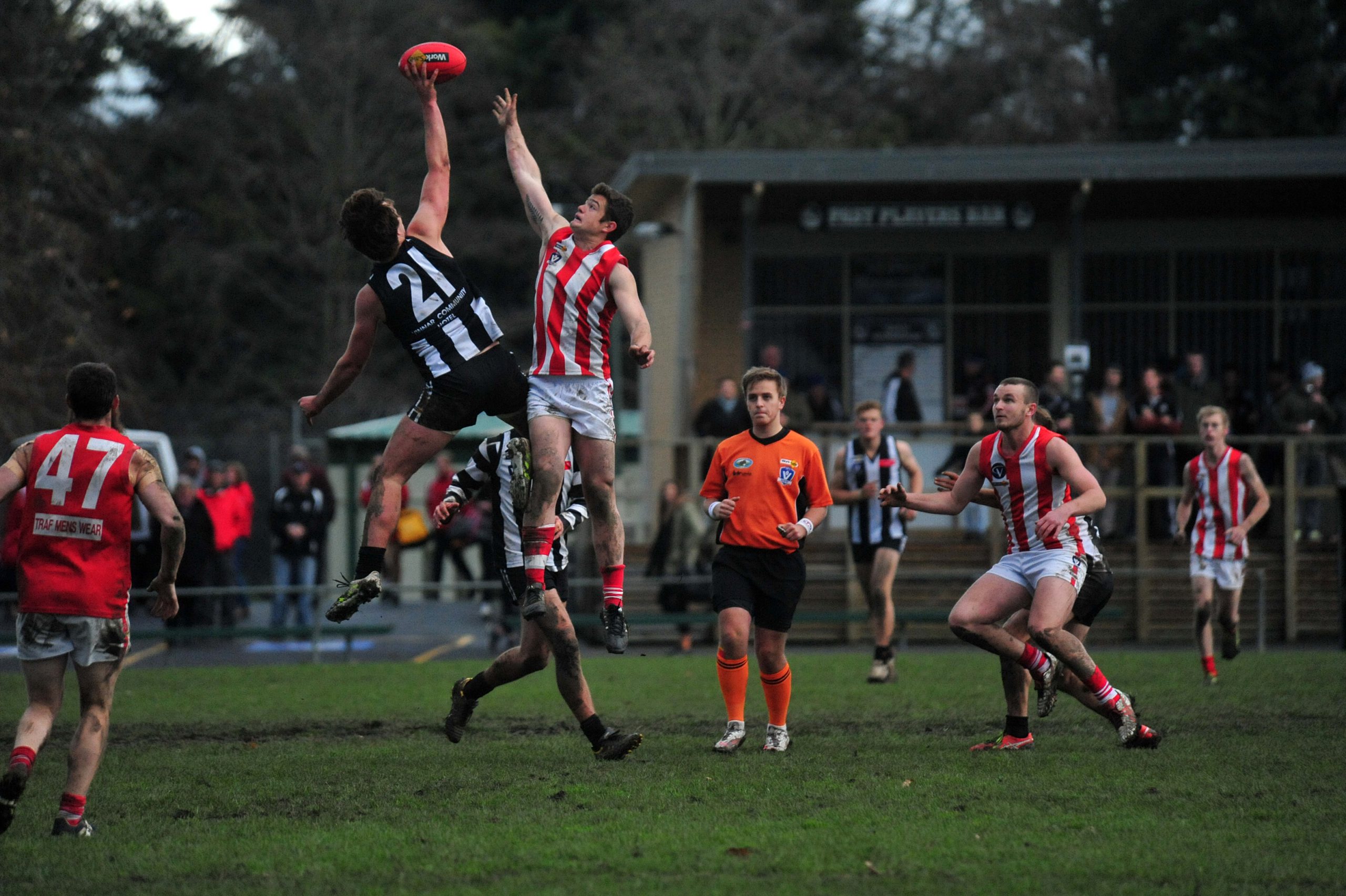 Trafalgar was lost in a sea of black and white and could not get into the forward line for the first half with a nil scoreline by half-time.