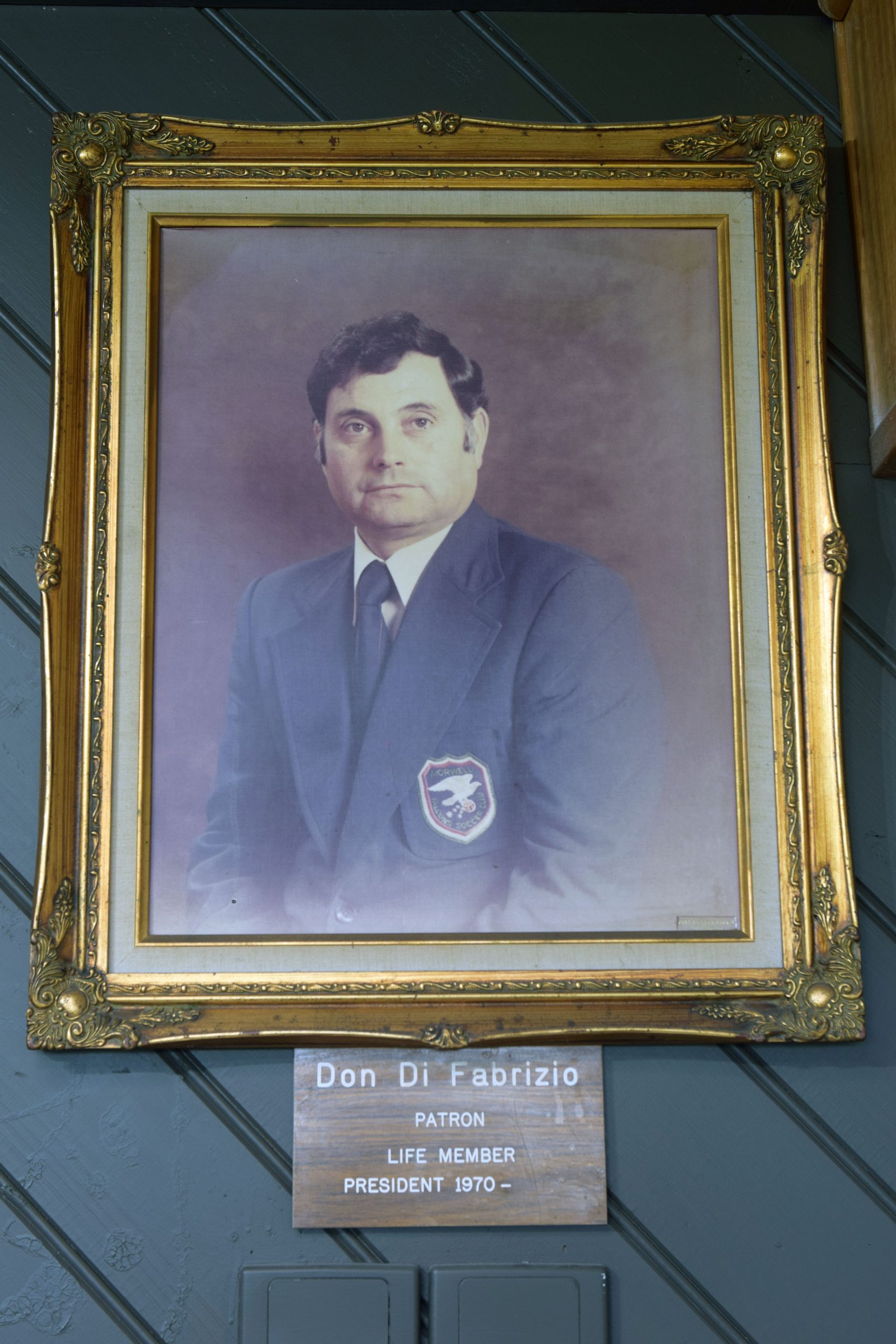 Icon: A portrait of Don Di Fabrizio hangs proudly in the Falcons club rooms. photograph liam durkin