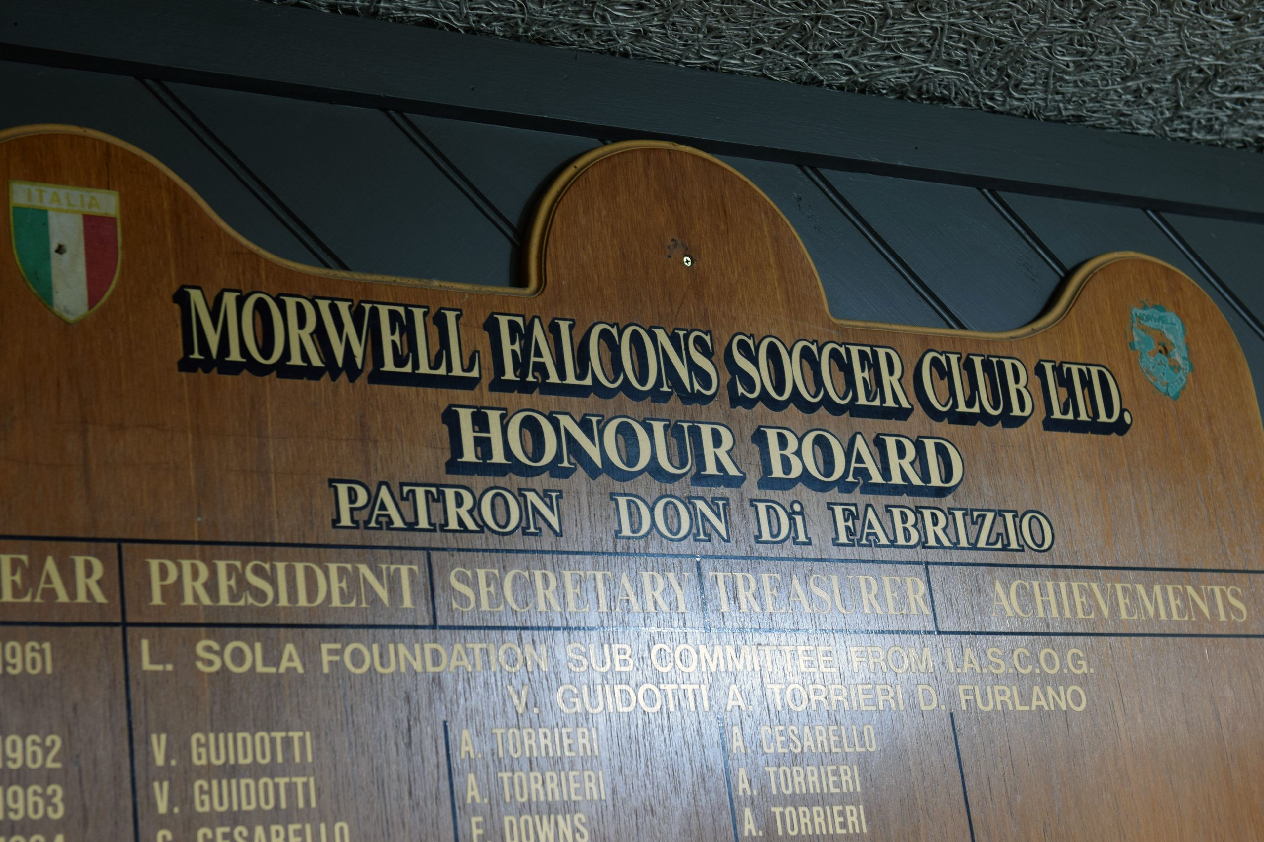 He was at the forefront of developing Immigration Park, Morwell, and most famously, as president of Morwell Falcons Soccer Club.