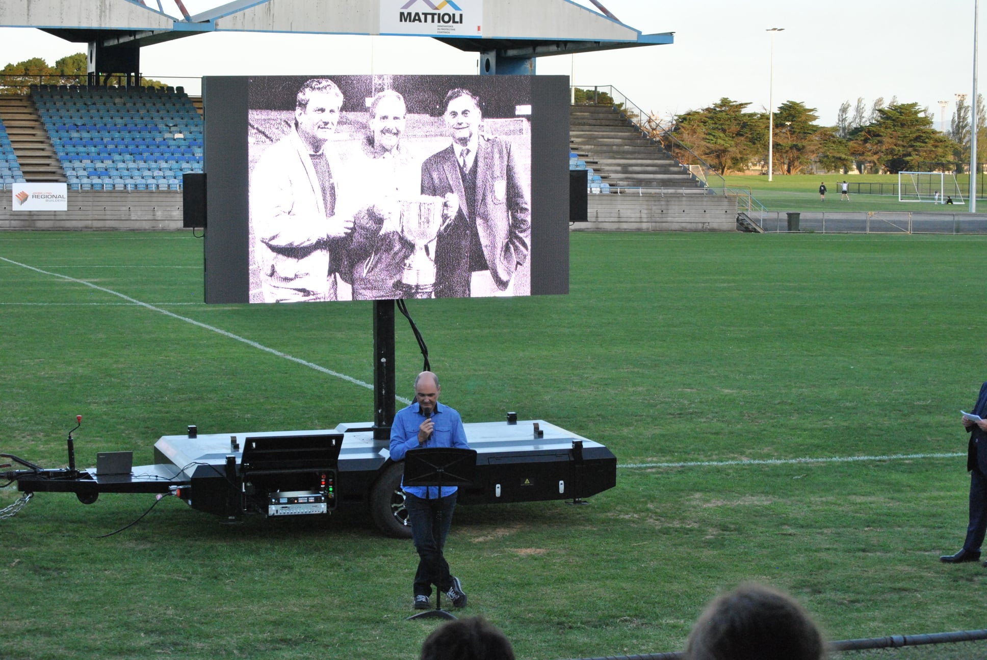 Those in attendance heard tributes delivered by members of the Di Fabrizio family, before a legends match was played featuring players from the NSL days.
